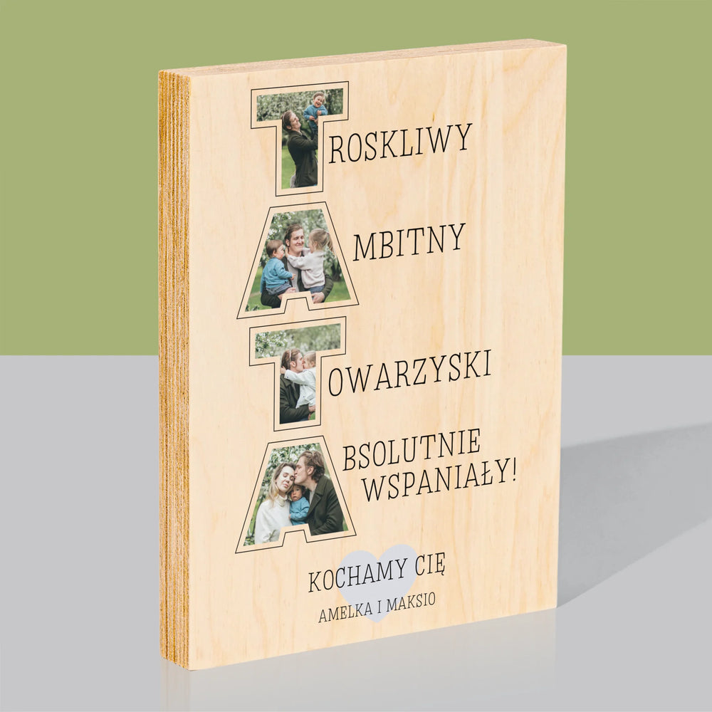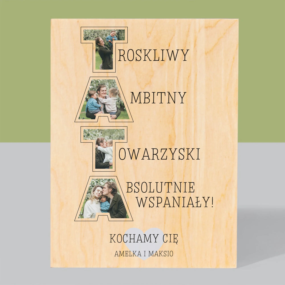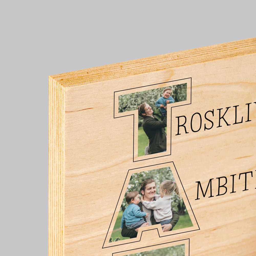 Słowo Ze Zdjęć: Dlaczego Kocham Tatę - Wydruk na drewnie - Pion