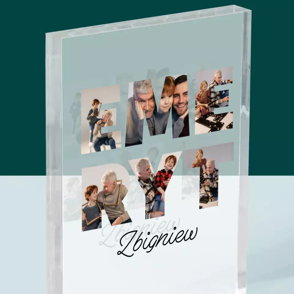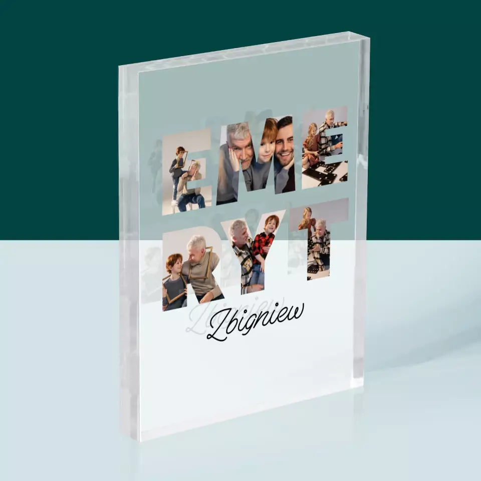 Słowo Ze Zdjęć: Emeryt - Blok Akrylowy z Nadrukiem