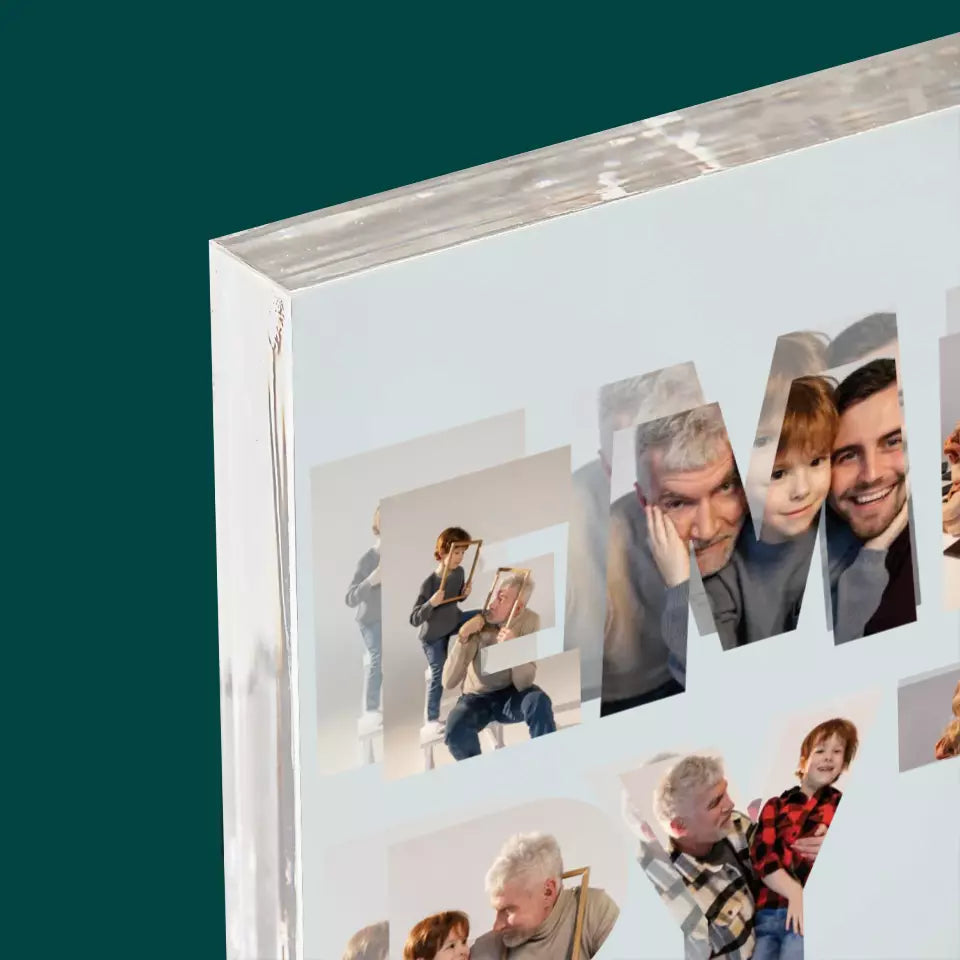 Wydruk na bezbarwnym bloku akrylowym (pleksiglas) o grubości 2 cm z wybranym przez Ciebie personalizowanym wzorem.