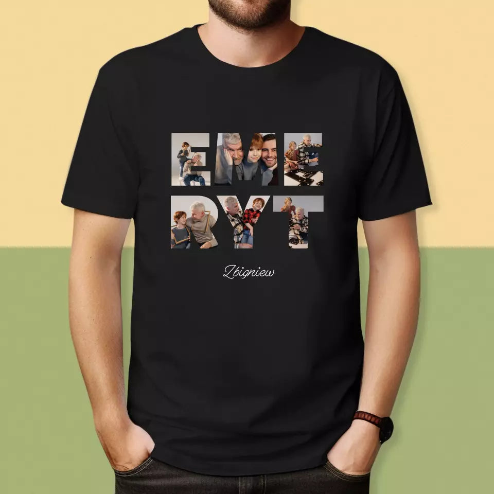 Słowo Ze Zdjęć: Emeryt - Personalizowana Koszulka Męska