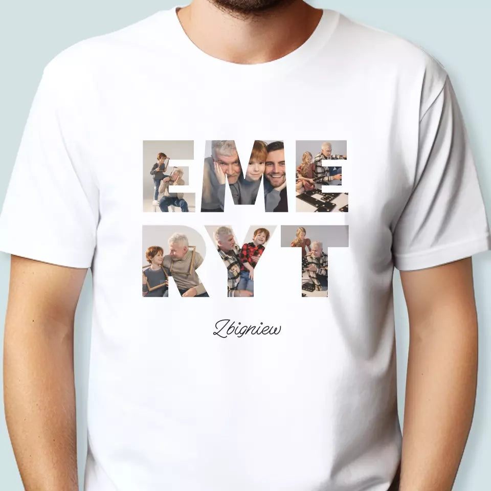 Słowo Ze Zdjęć: Emeryt - Personalizowana Koszulka Męska