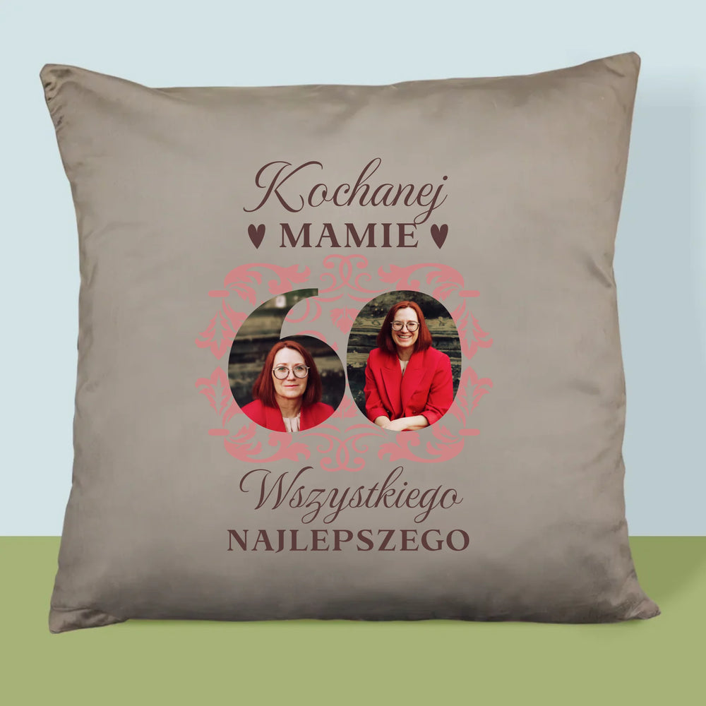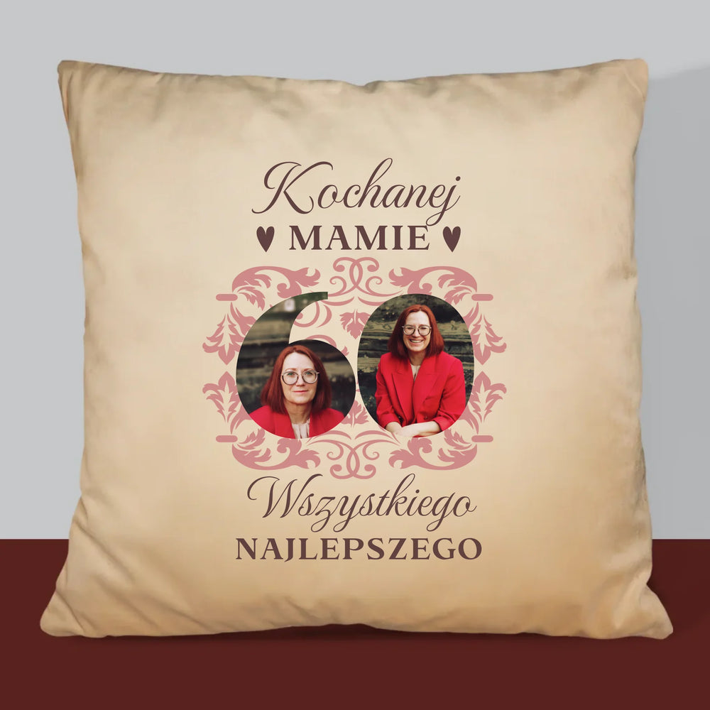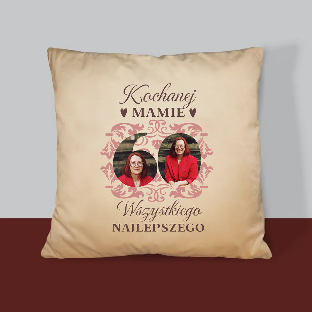 Słowo Ze Zdjęć: Kochanej Mamie z Okazji 60 Urodzin - Poduszka z Nadrukiem
