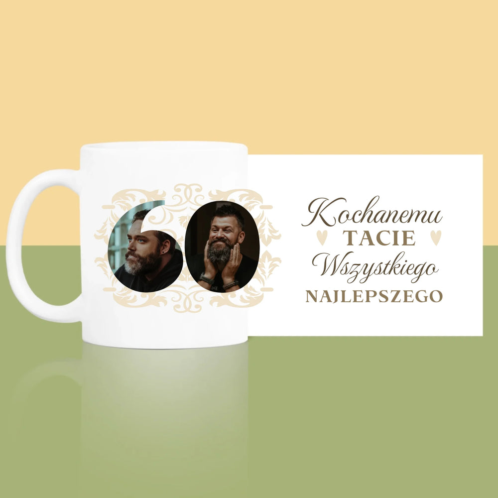 Słowo Ze Zdjęć: Kochanemu Tacie z Okazji 60 Urodzin - Kubek z nadrukiem