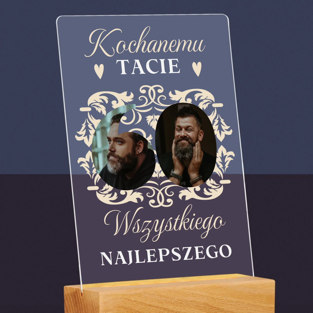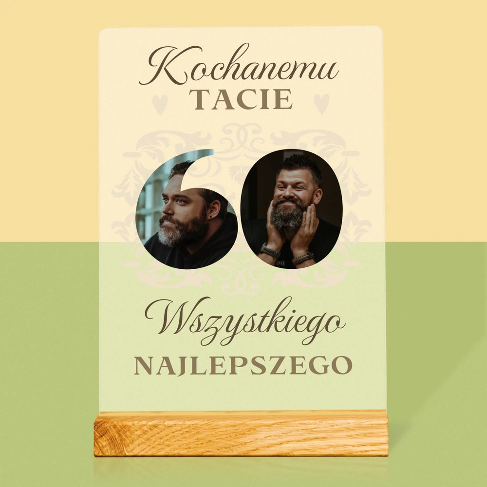 Słowo Ze Zdjęć: Kochanemu Tacie z Okazji 60 Urodzin - Wydruk na szkle akrylowym