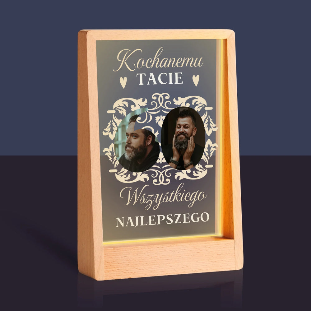 Słowo Ze Zdjęć: Kochanemu Tacie z Okazji 60 Urodzin - Wydruk na szkle akrylowym w ramce LED