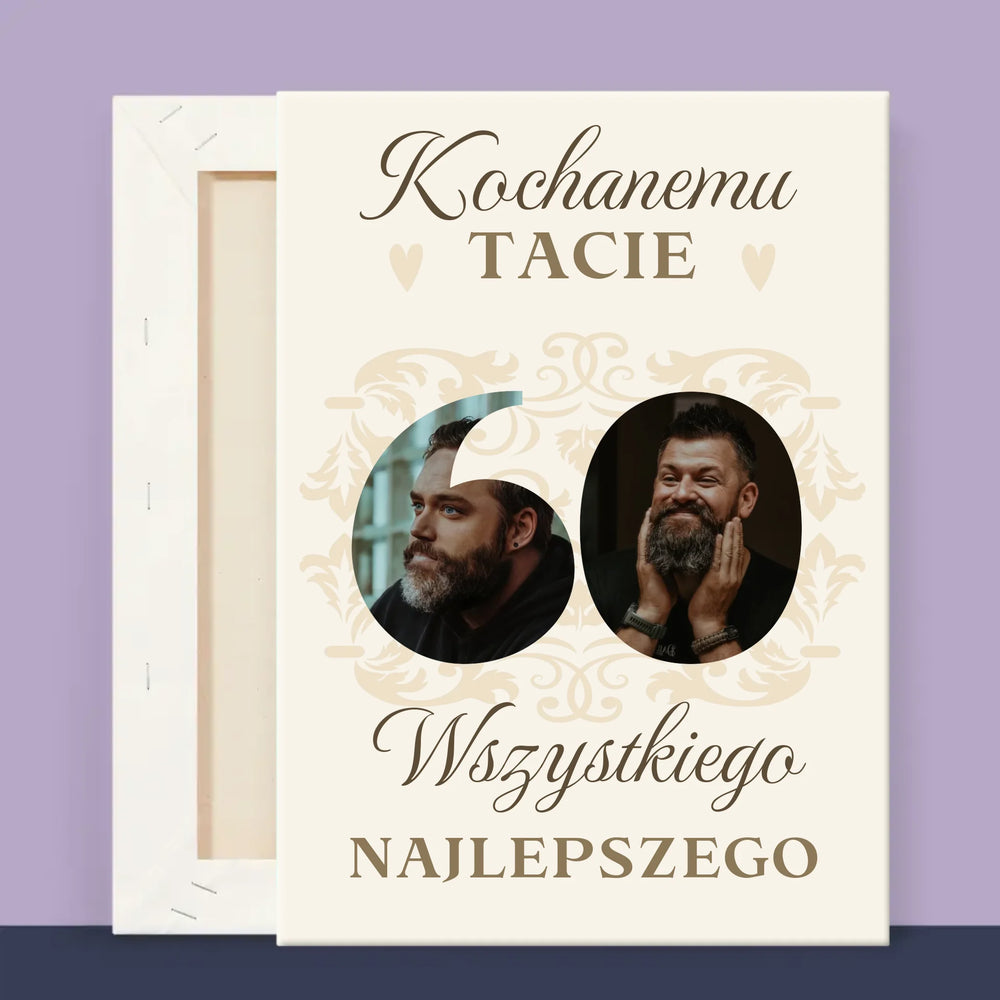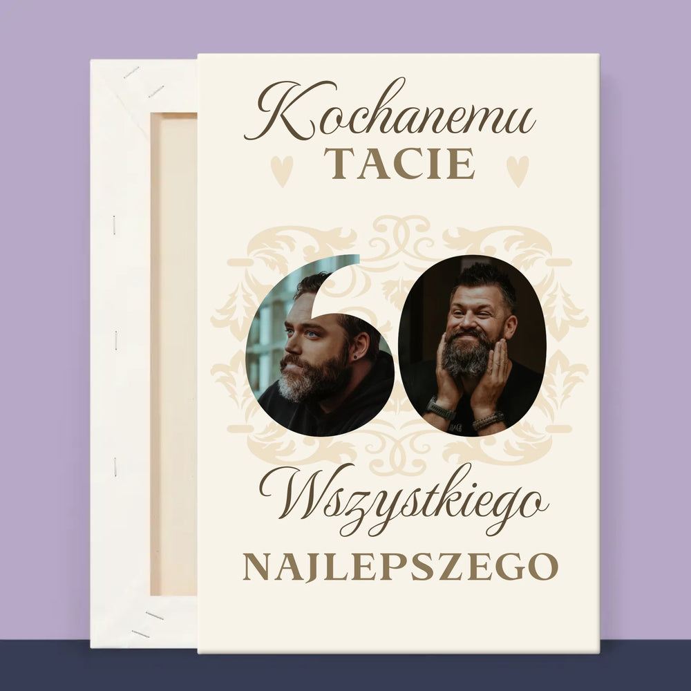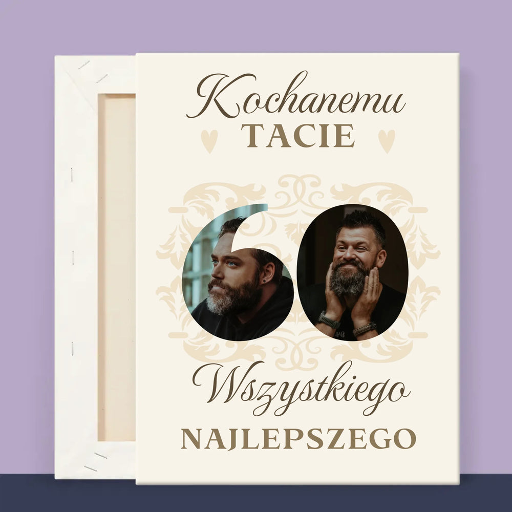 Słowo Ze Zdjęć: Kochanemu Tacie z Okazji 60 Urodzin - Personalizowany Obraz na płótnie