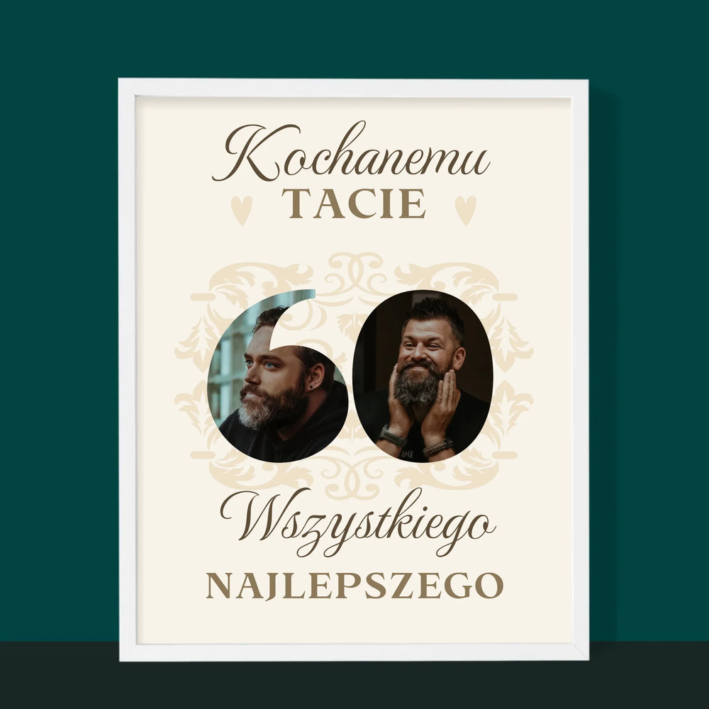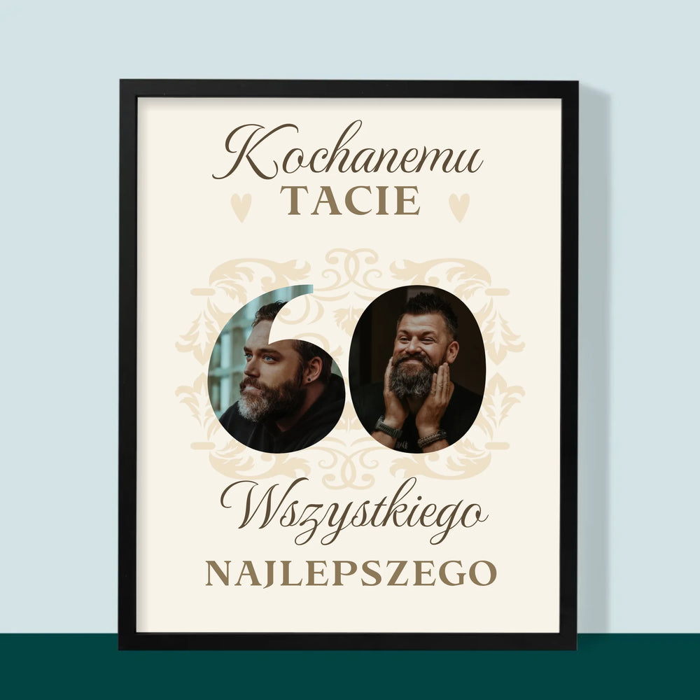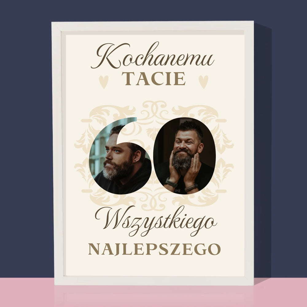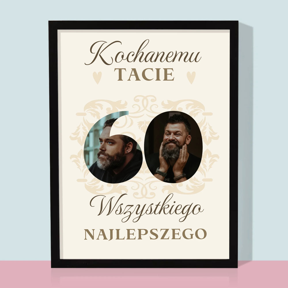 Słowo Ze Zdjęć: Kochanemu Tacie z Okazji 60 Urodzin - Personalizowany Obraz na płótnie
