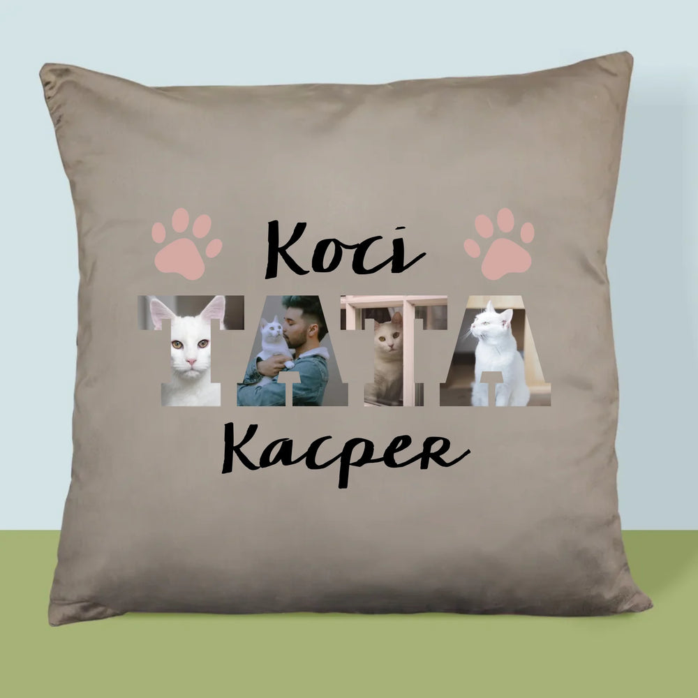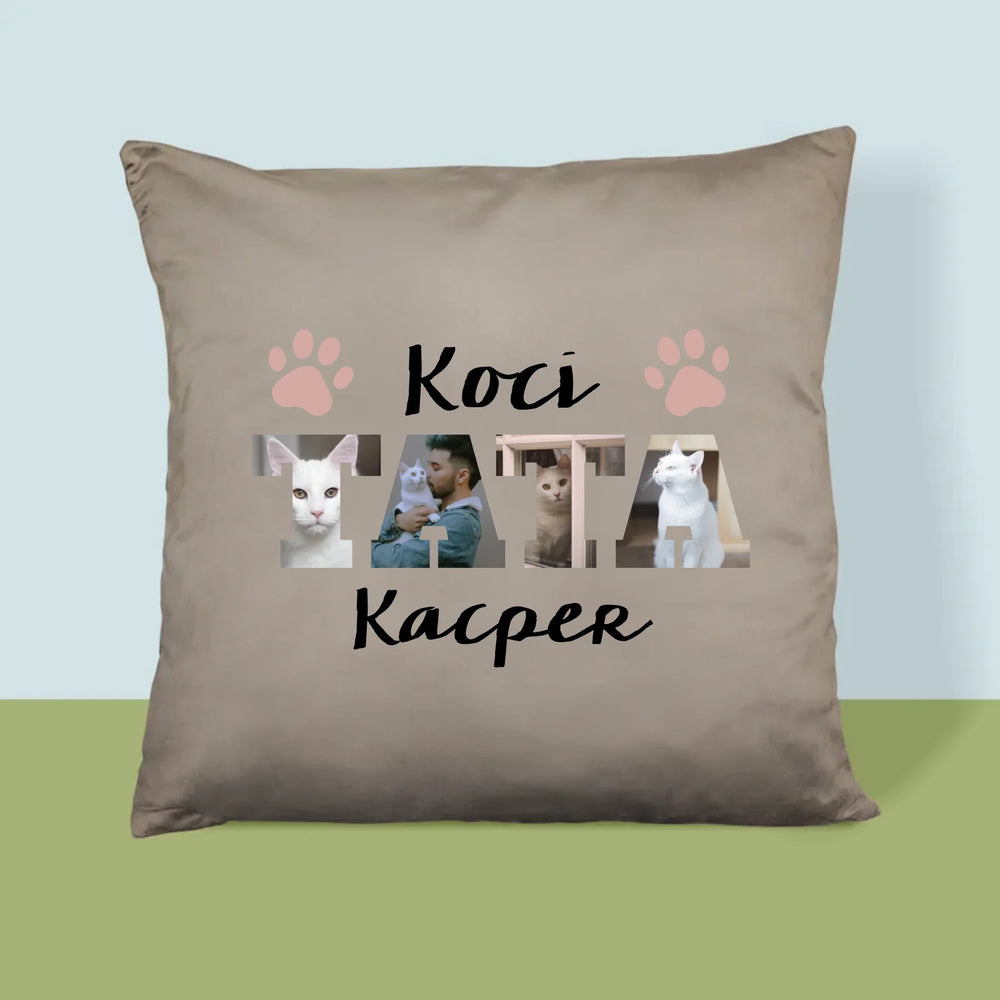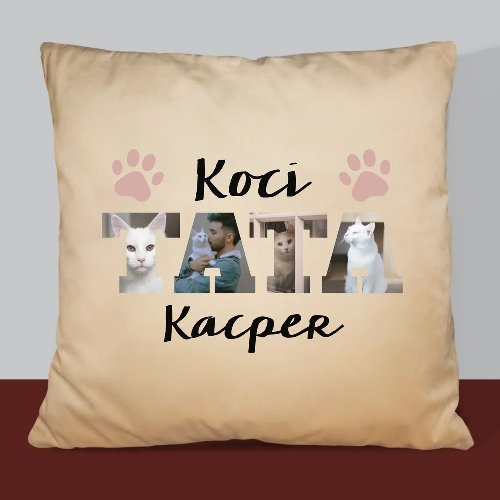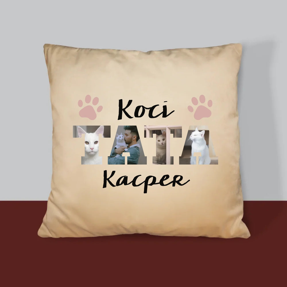 Słowo Ze Zdjęć: Koci Tata - Poduszka z Nadrukiem