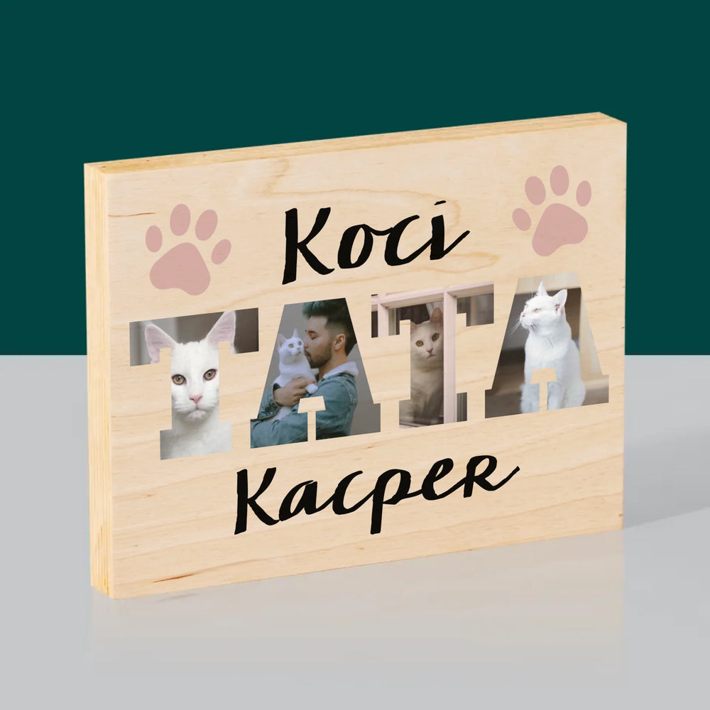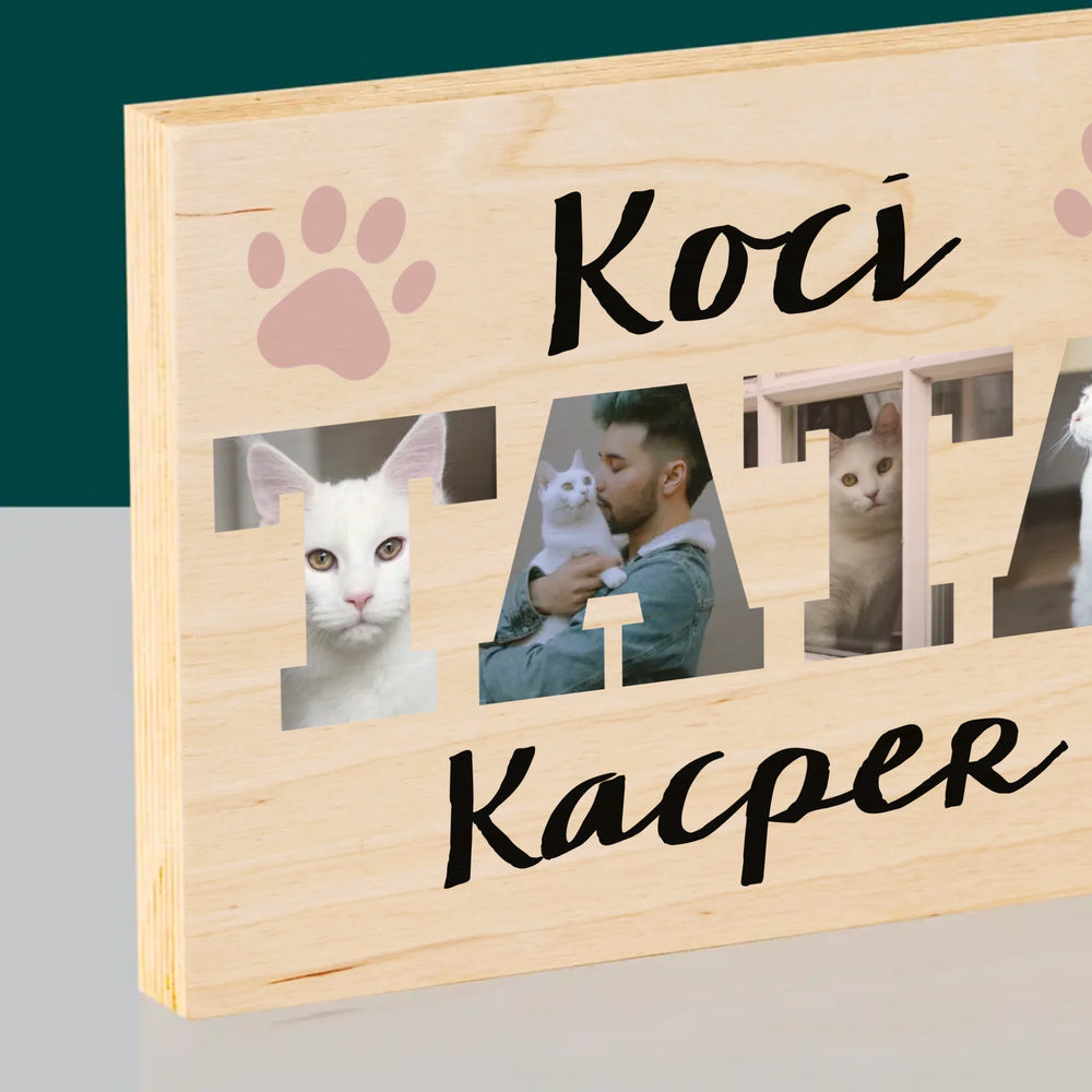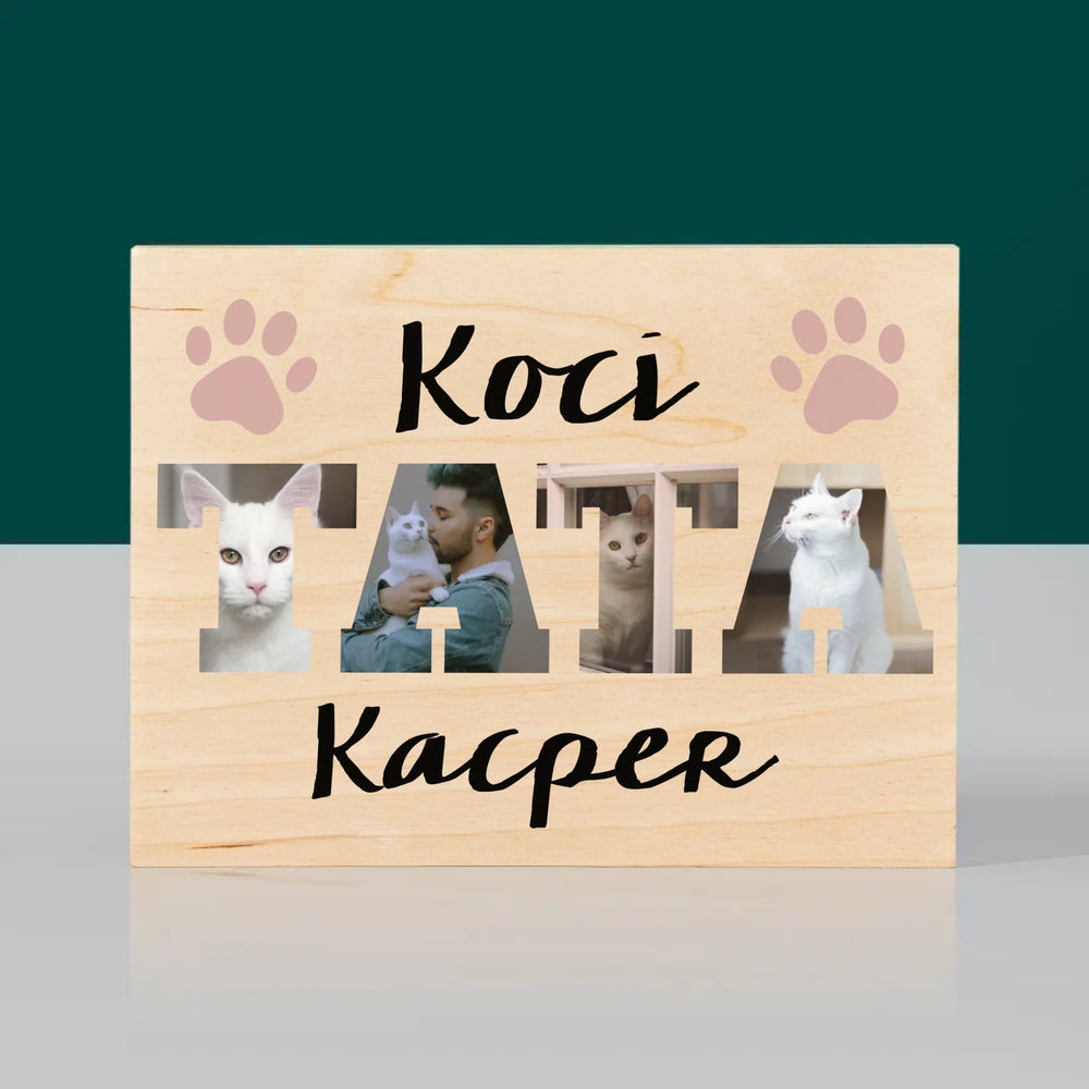 Słowo Ze Zdjęć: Koci Tata - Wydruk na drewnie - Poziom
