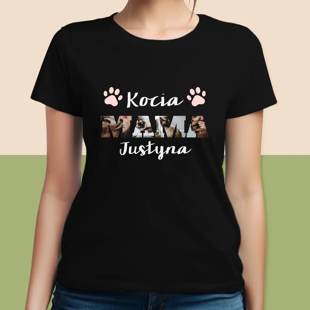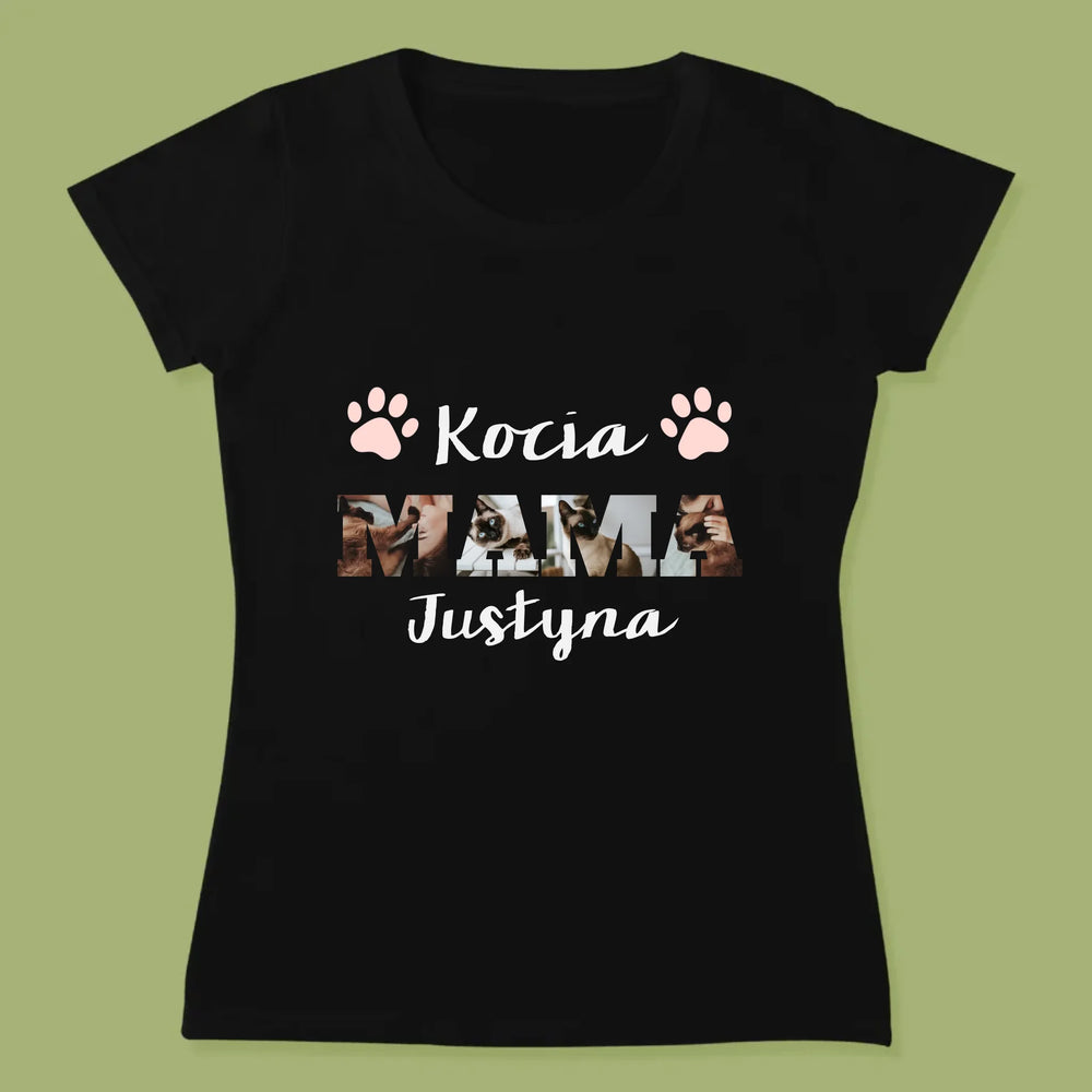 Słowo Ze Zdjęć: Kocia Mama - Personalizowana Koszulka Damska