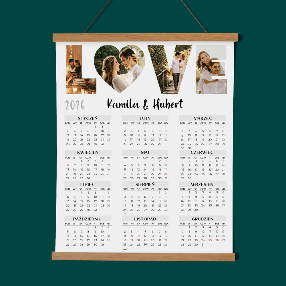 Słowo Ze Zdjęć: Love - Kalendarz plakatowy z listwami