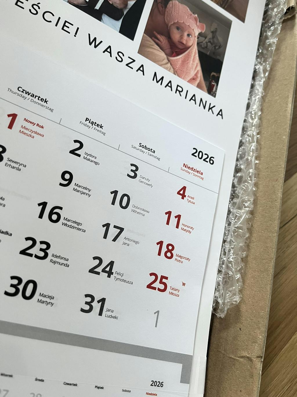 Kalendarz jednodzielny z wybranym przez Ciebie personalizowanym wzorem.