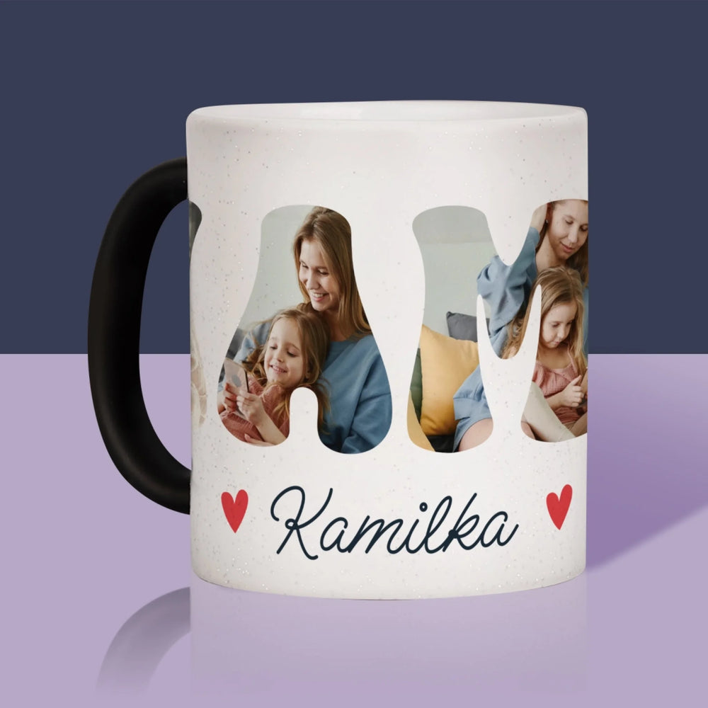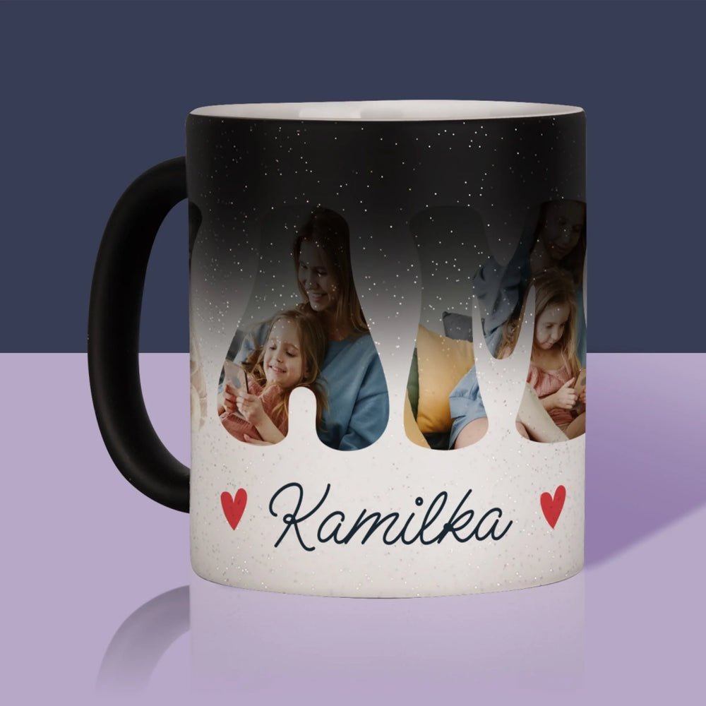 Słowo Ze Zdjęć: Mama Imię - Magiczny kubek z brokatem