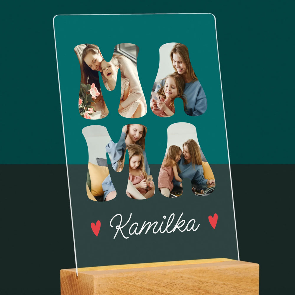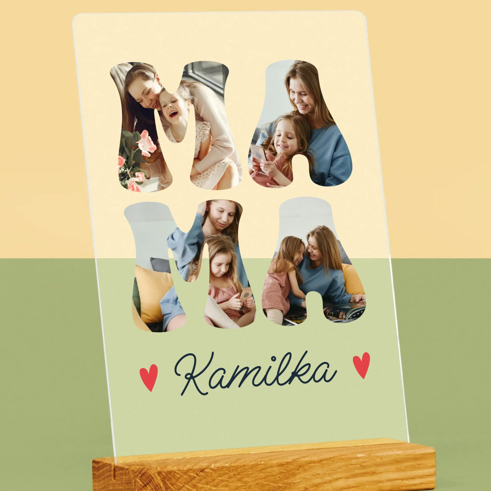 Słowo Ze Zdjęć: Mama Imię - Wydruk na szkle akrylowym