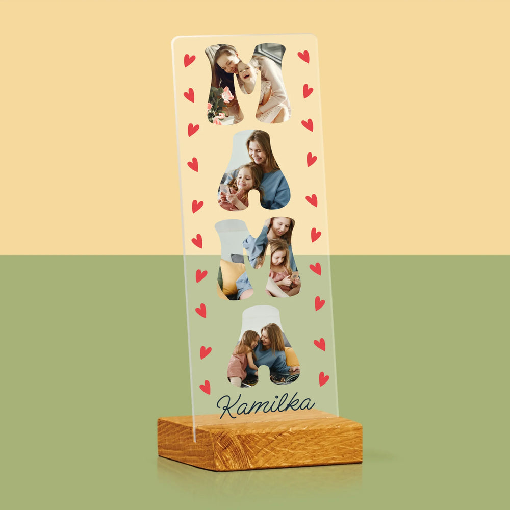 Słowo Ze Zdjęć: Mama Imię - Zdjęcie na szkle akrylowym fotobudka
