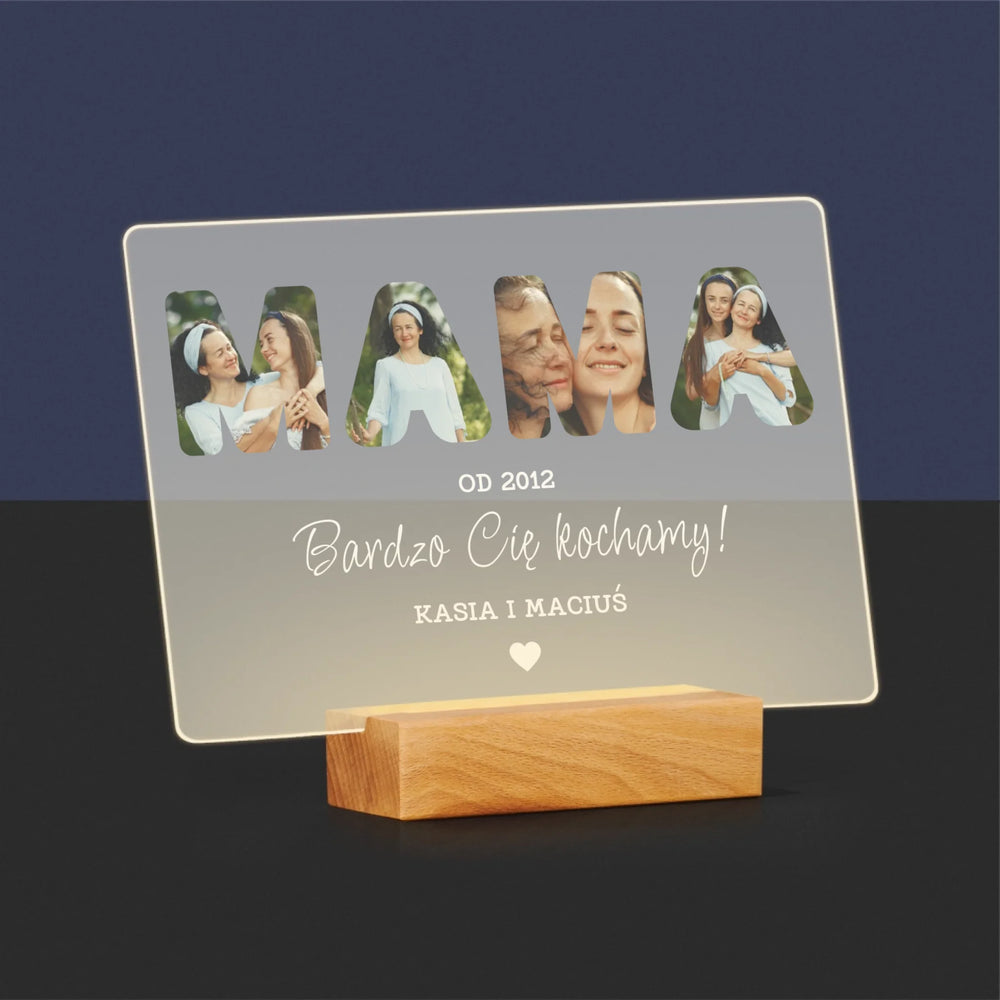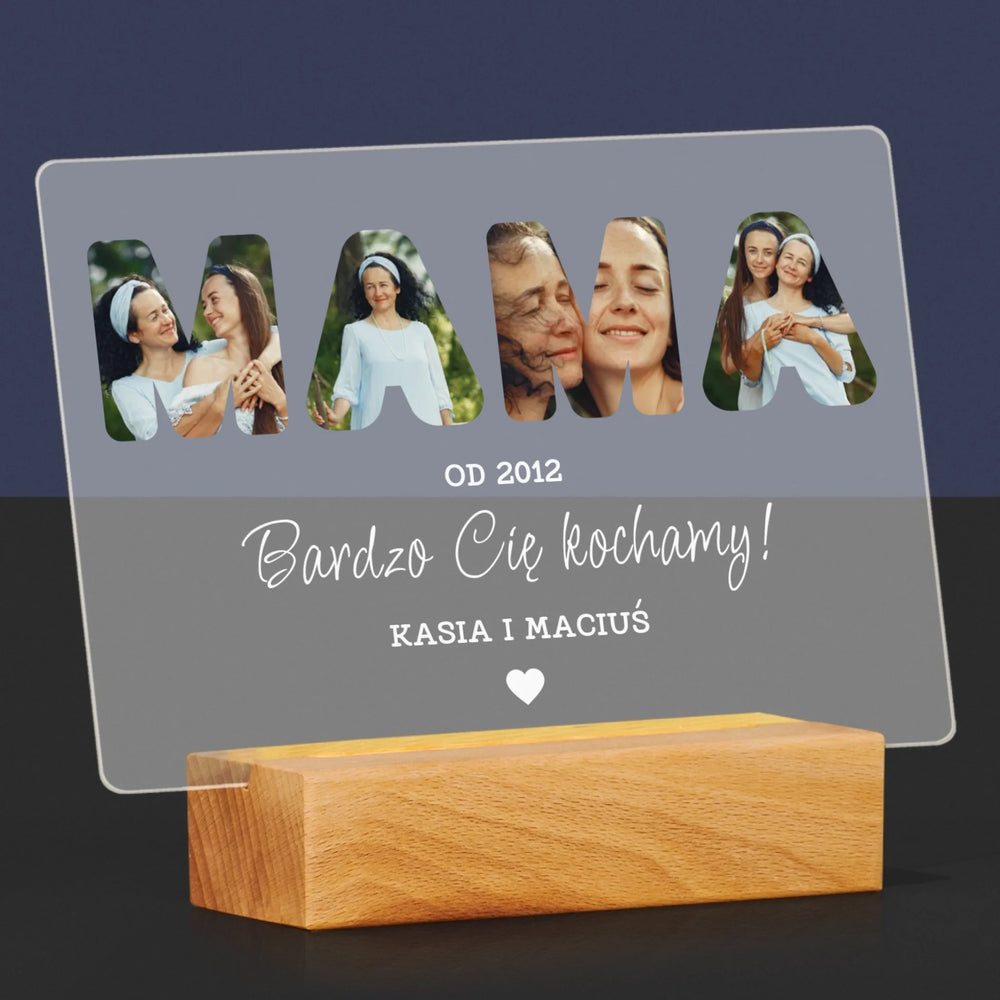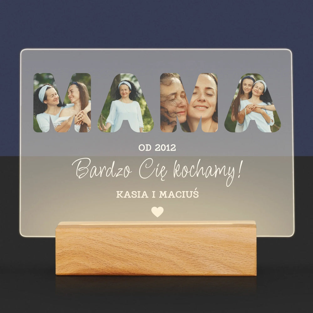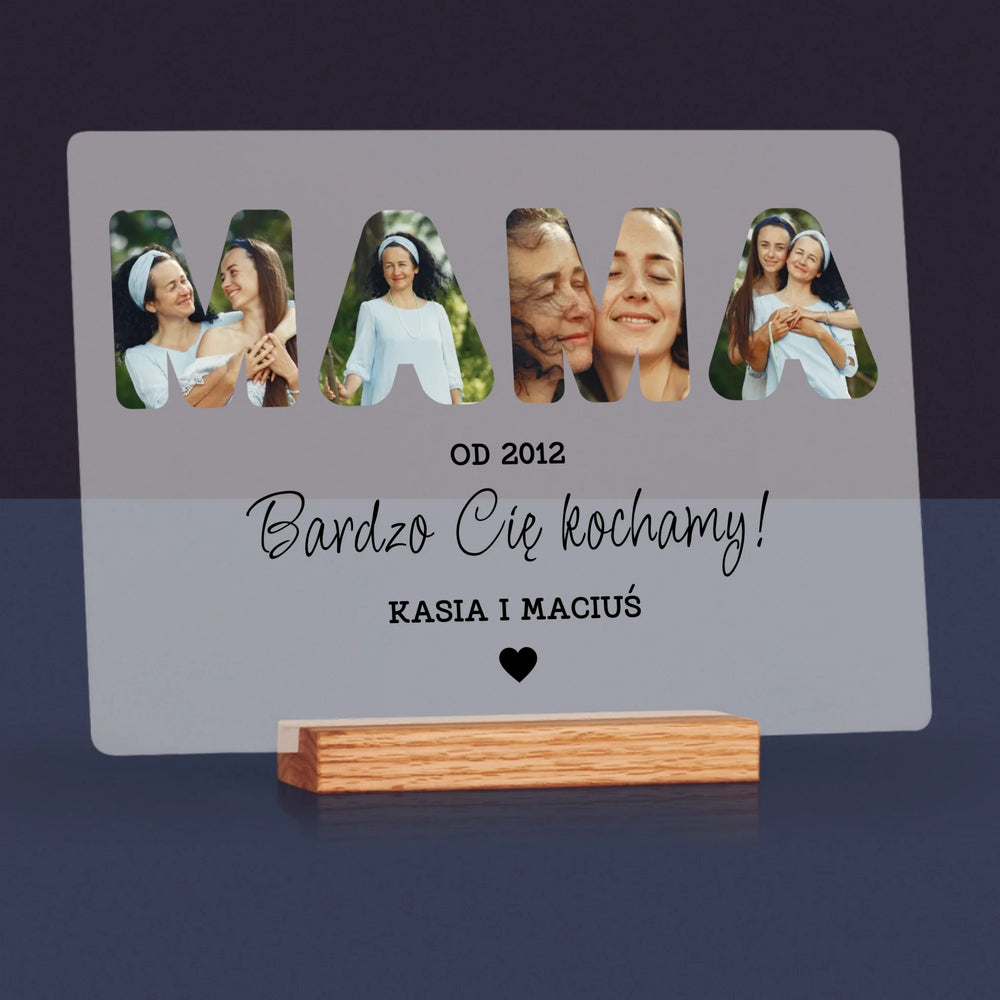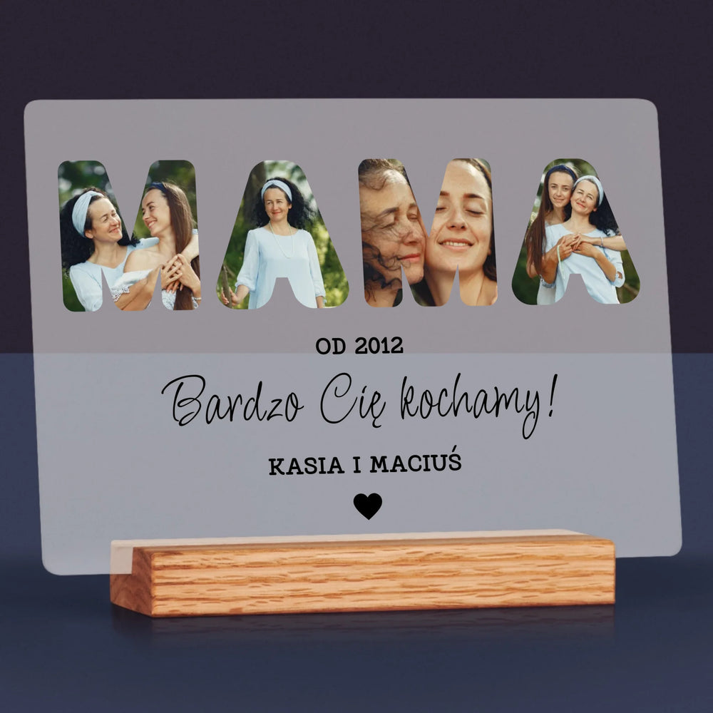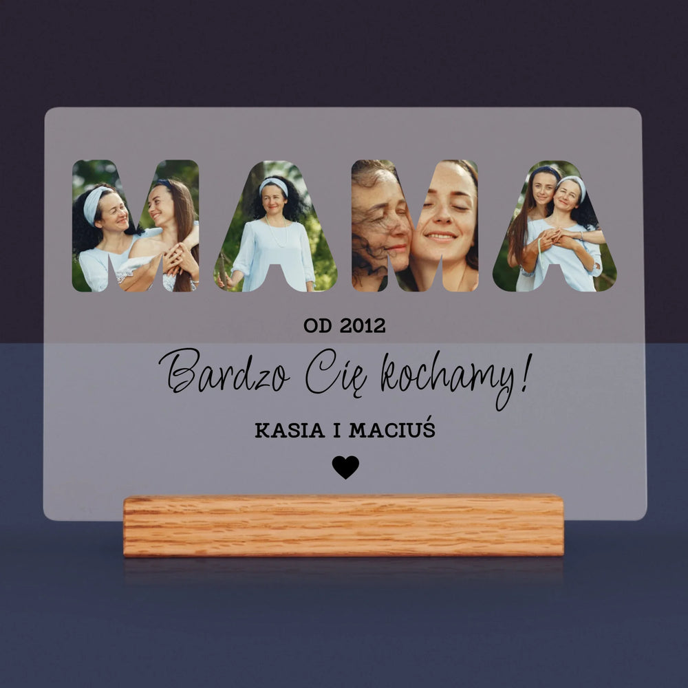 Słowo Ze Zdjęć: Mamo Bardzo Cię Kochamy - Wydruk na szkle akrylowym - poziom