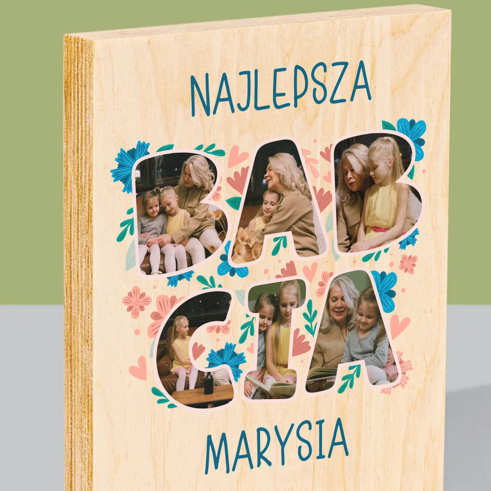 Słowo Ze Zdjęć: Najlepsza Babcia - Wydruk na drewnie - Pion