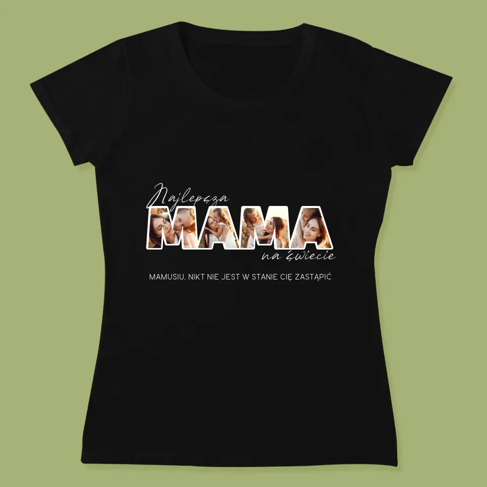 Słowo Ze Zdjęć: Najlepsza Mama Na Świecie Zdjęcia - Personalizowana Koszulka Damska