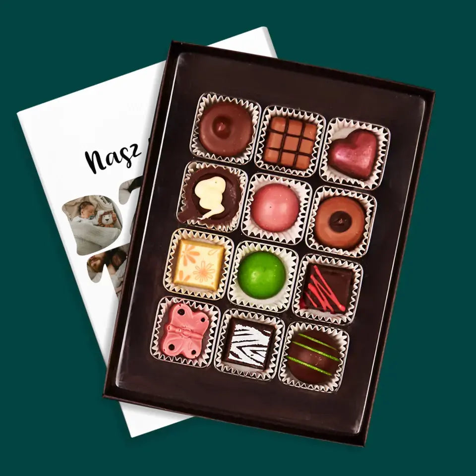 Pyszne praliny z belgijskiej czekolady w eleganckim pudełku z wybraną przez Ciebie personalizacją.