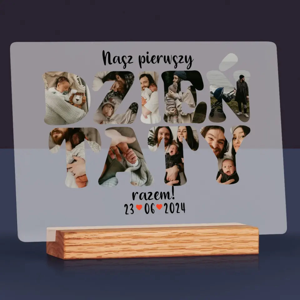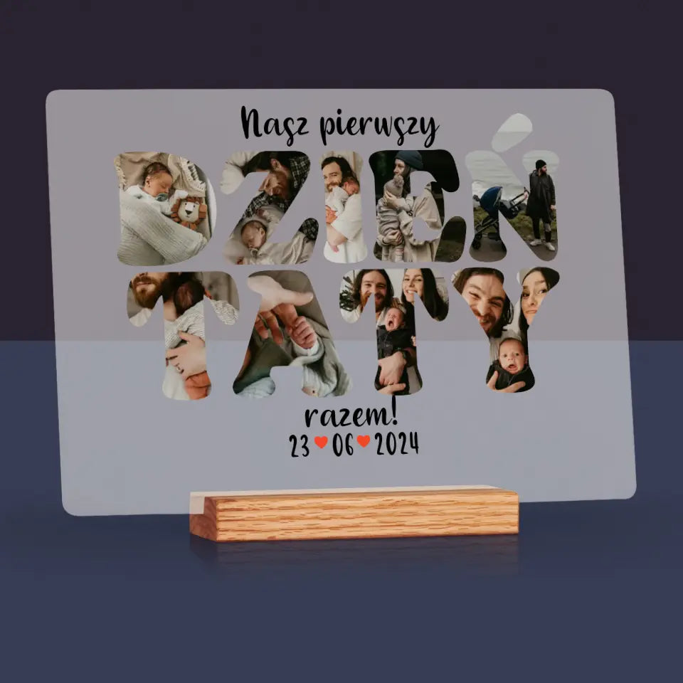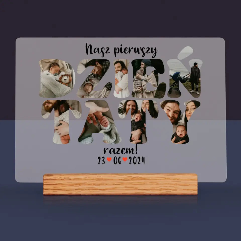 Słowo Ze Zdjęć: Nasz Pierwszy Dzień Taty - Wydruk na szkle akrylowym - poziom