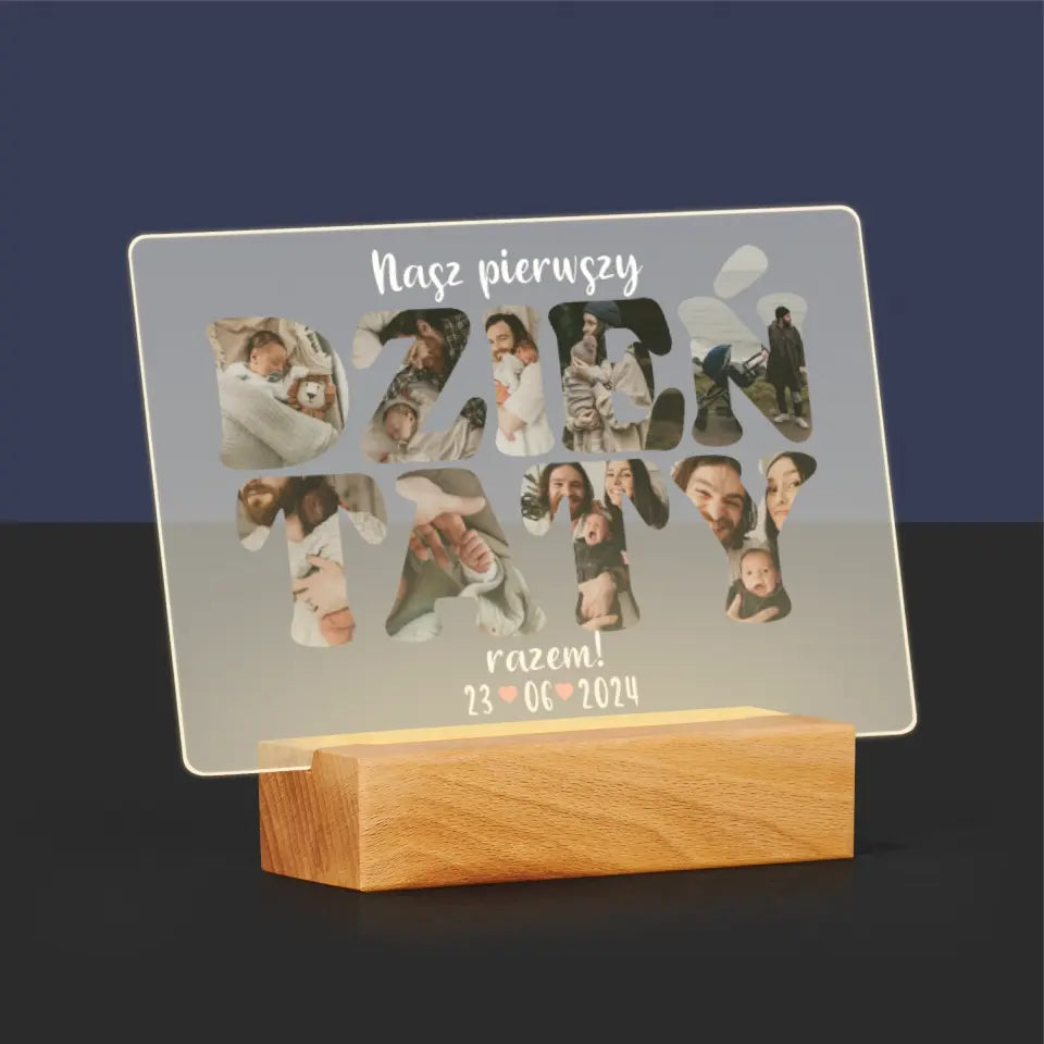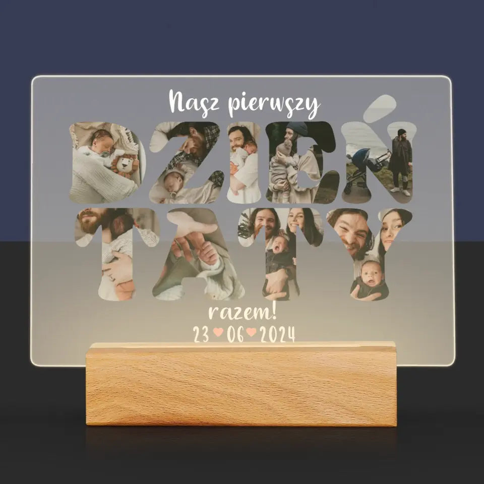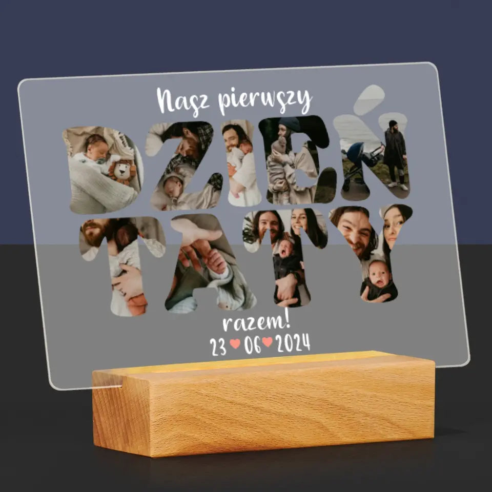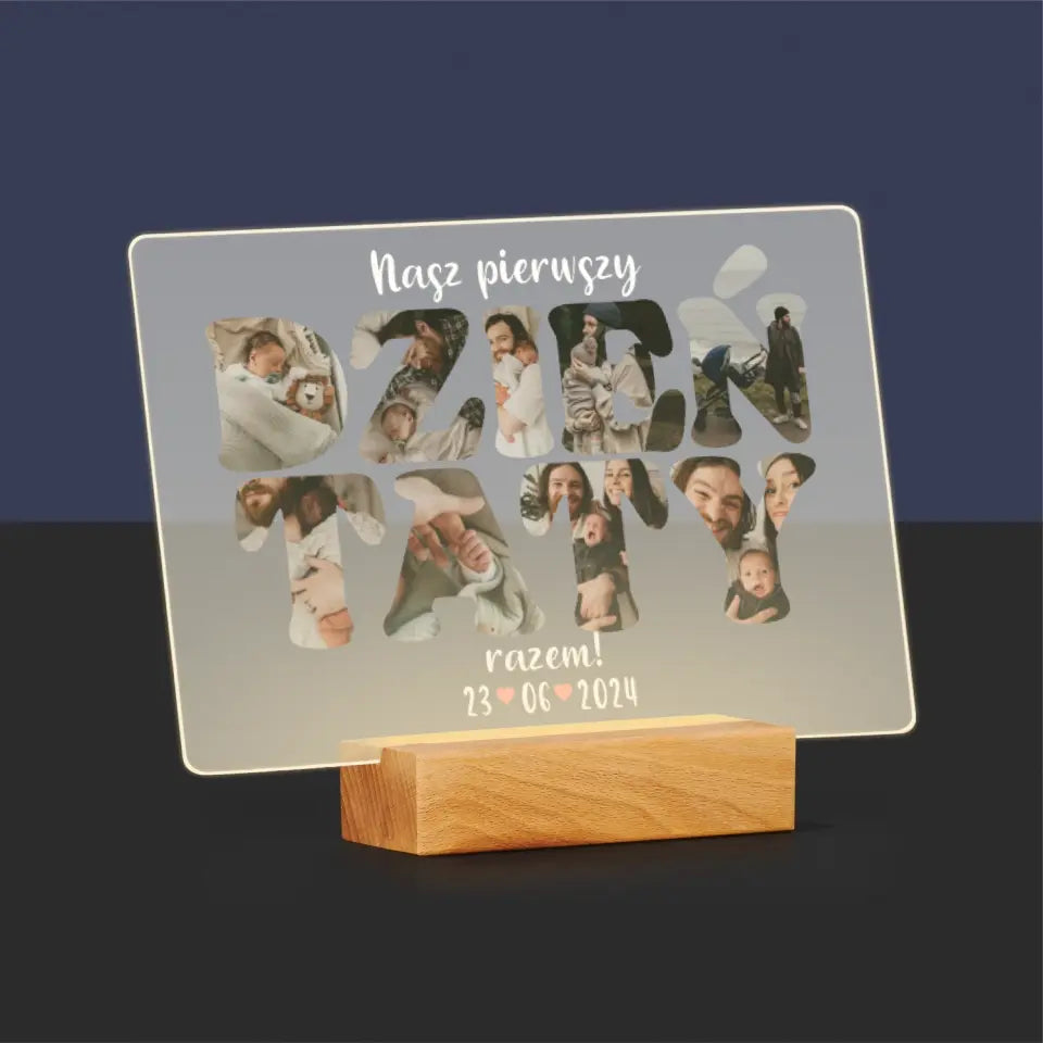 Słowo Ze Zdjęć: Nasz Pierwszy Dzień Taty - Wydruk na szkle akrylowym - poziom