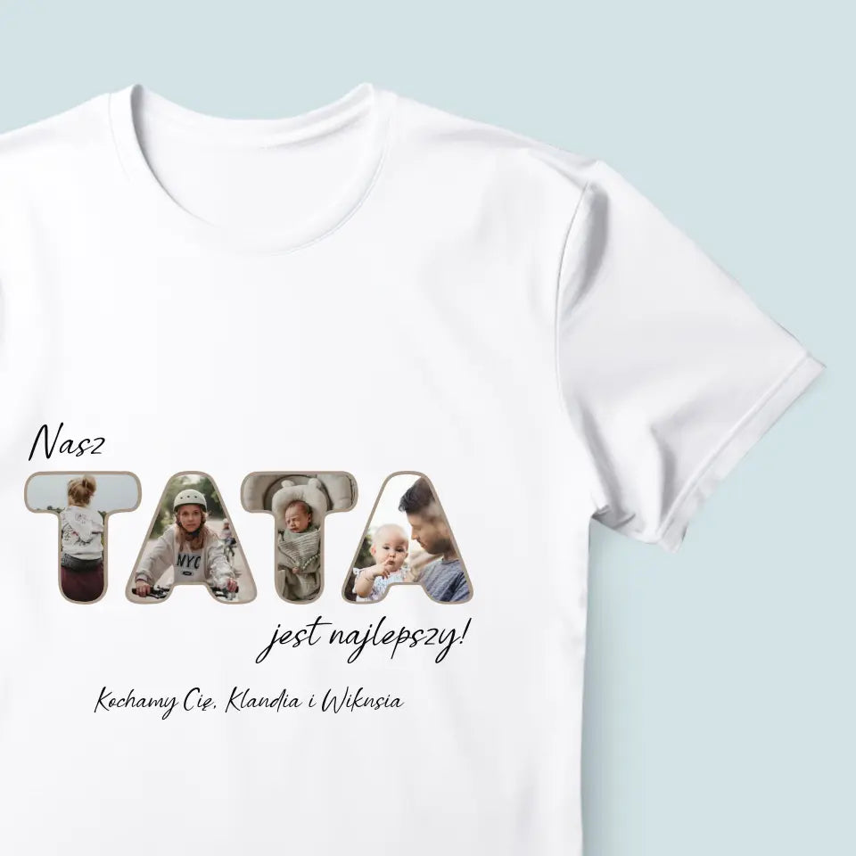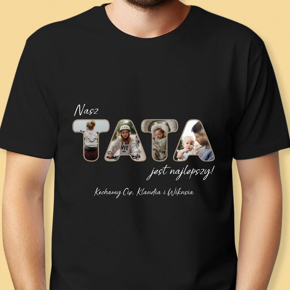 Słowo Ze Zdjęć: Nasz Tata Jest Najlepszy - Personalizowana Koszulka Męska