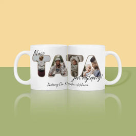 Wysokiej jakości kubek z wybraną przez Ciebie personalizacją ze skarpetkami dla taty w środku.