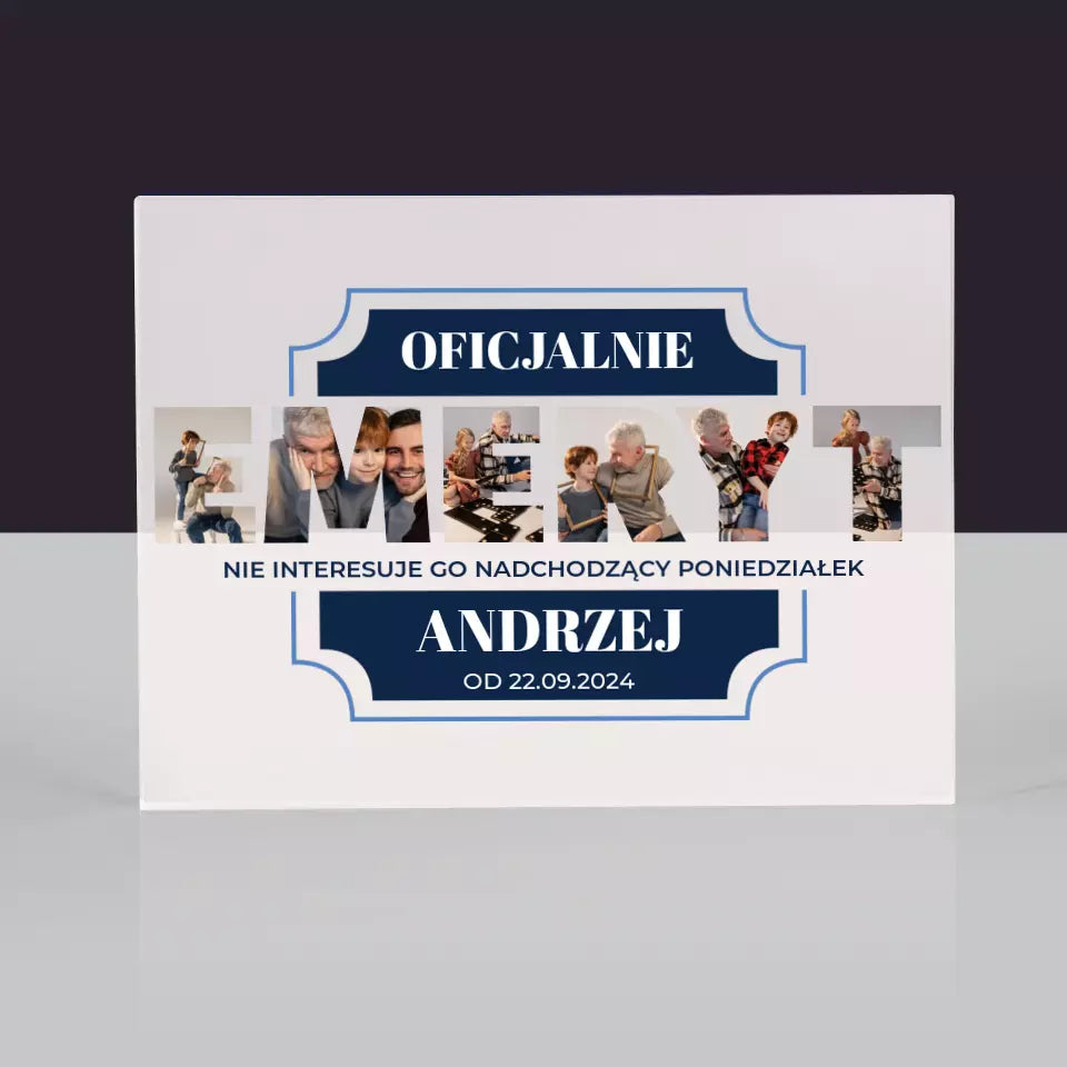 Słowo Ze Zdjęć: Oficjalnie Emeryt - Personalizowany Blok Akrylowy