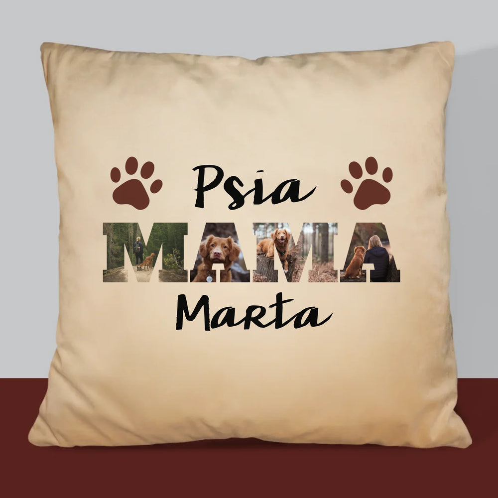 Słowo Ze Zdjęć: Psia Mama z Twoich Zdjęć - Poduszka z Nadrukiem