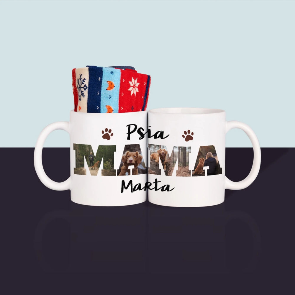 Słowo ze Zdjęć: Psia Mama z Twoich Zdjęć - Zimowe skarpetki w kubku