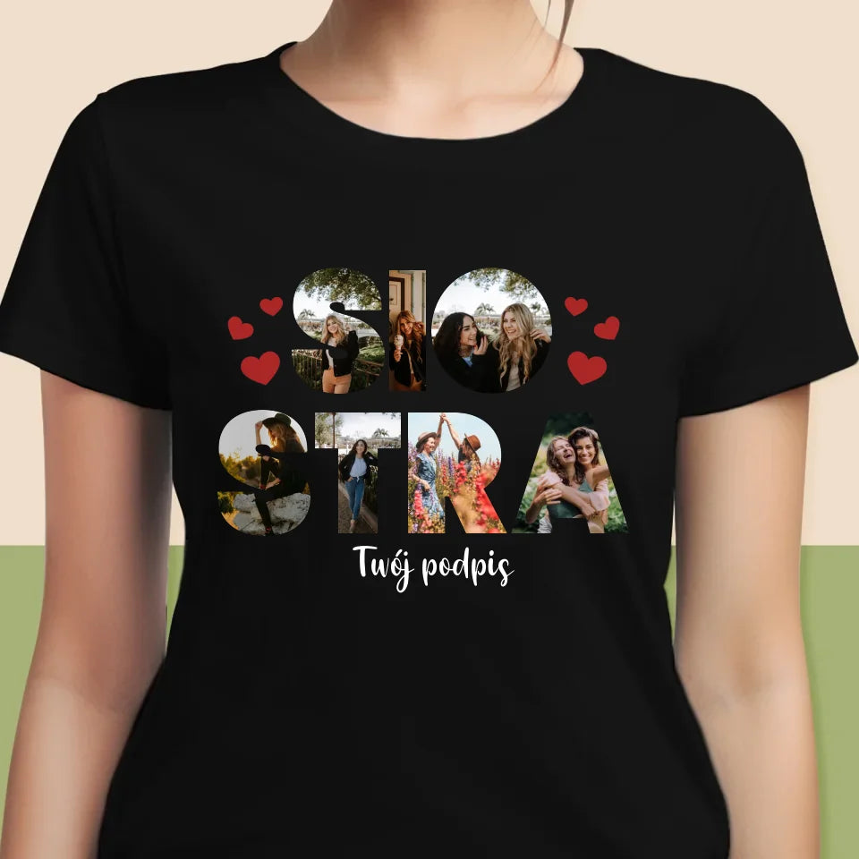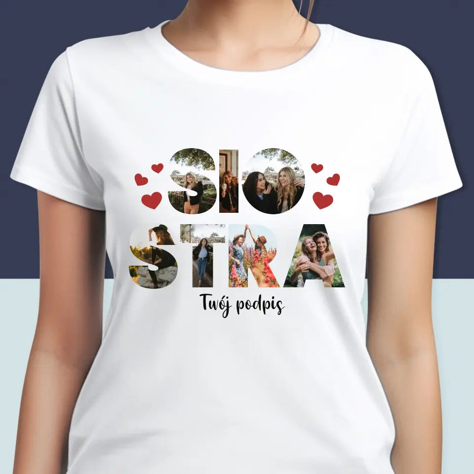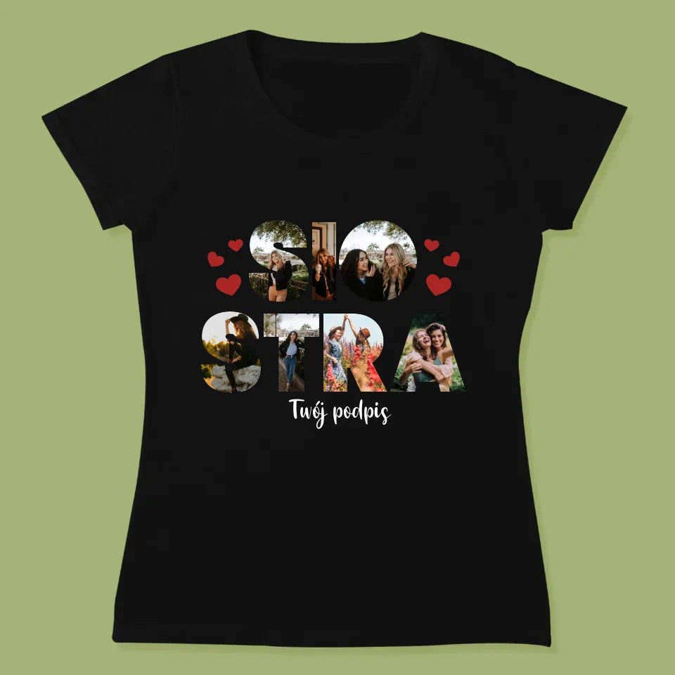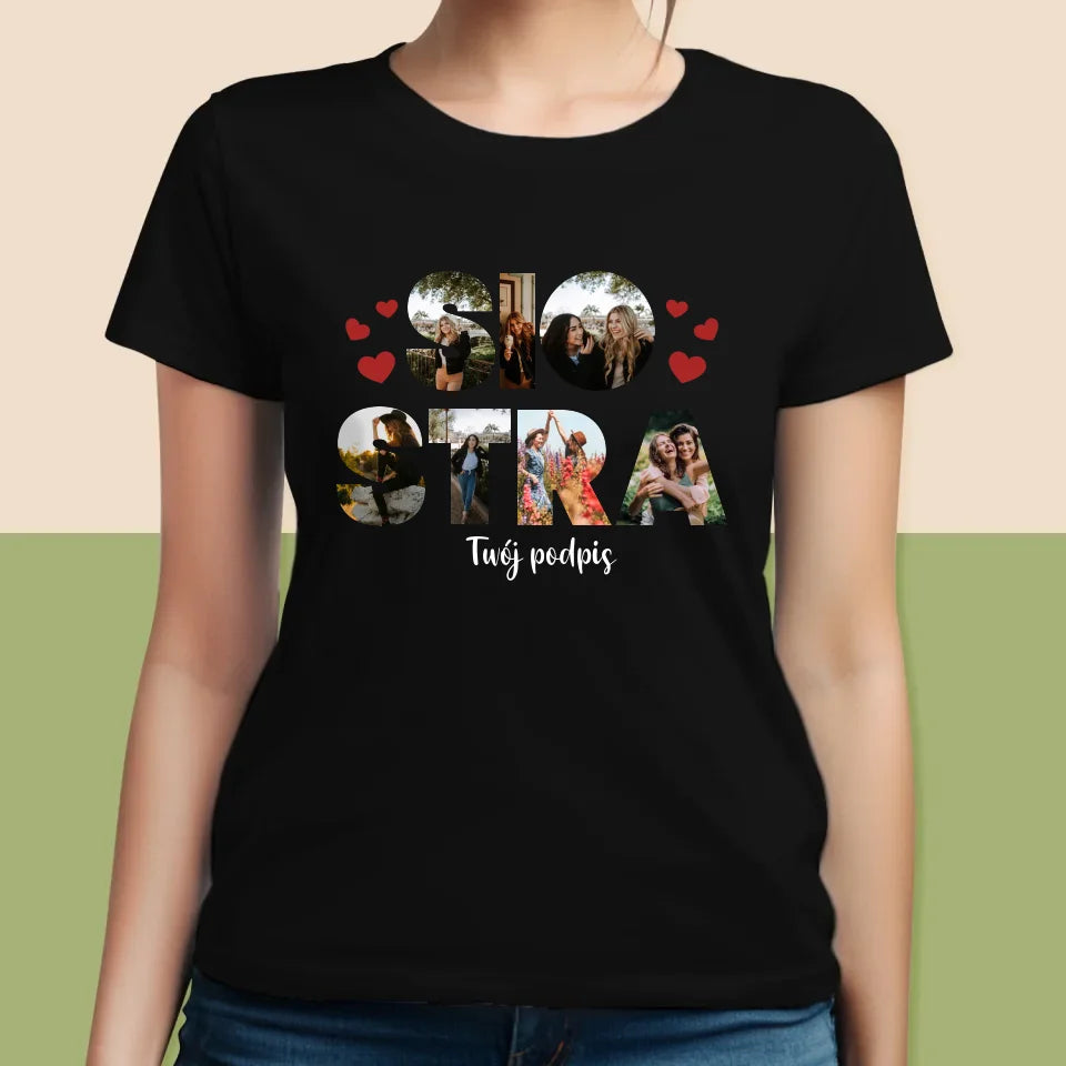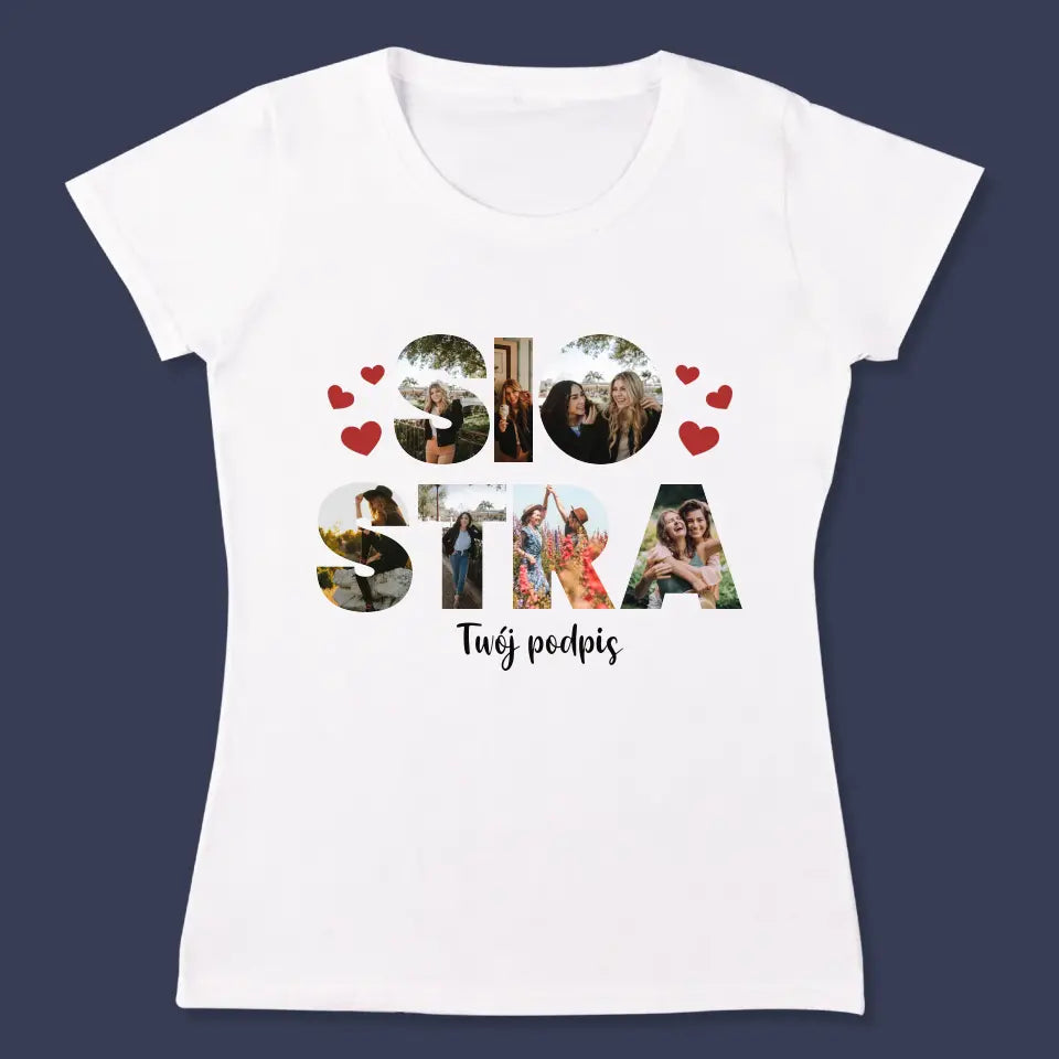 Słowo Ze Zdjęć: Siostra - Personalizowana Koszulka Damska