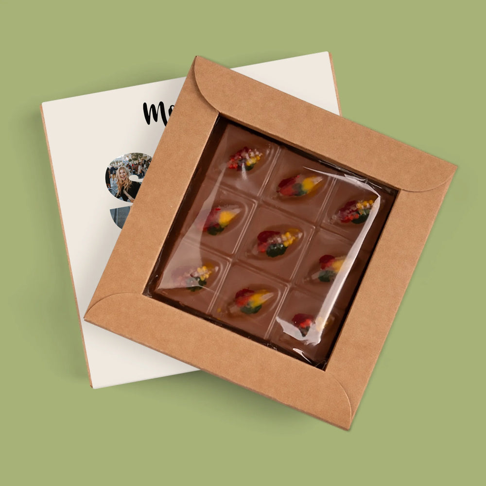 Czekolada dubajska z pysznym nadzieniem w eleganckim pudełku z wybraną przez Ciebie personalizacją.