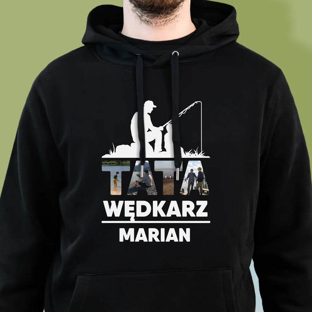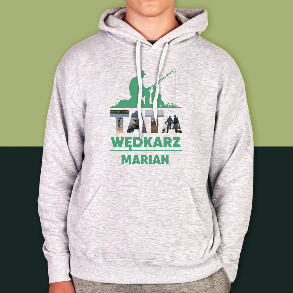 Słowo Ze Zdjęć: Tata Wędkarz - Bluza męska z kapturem