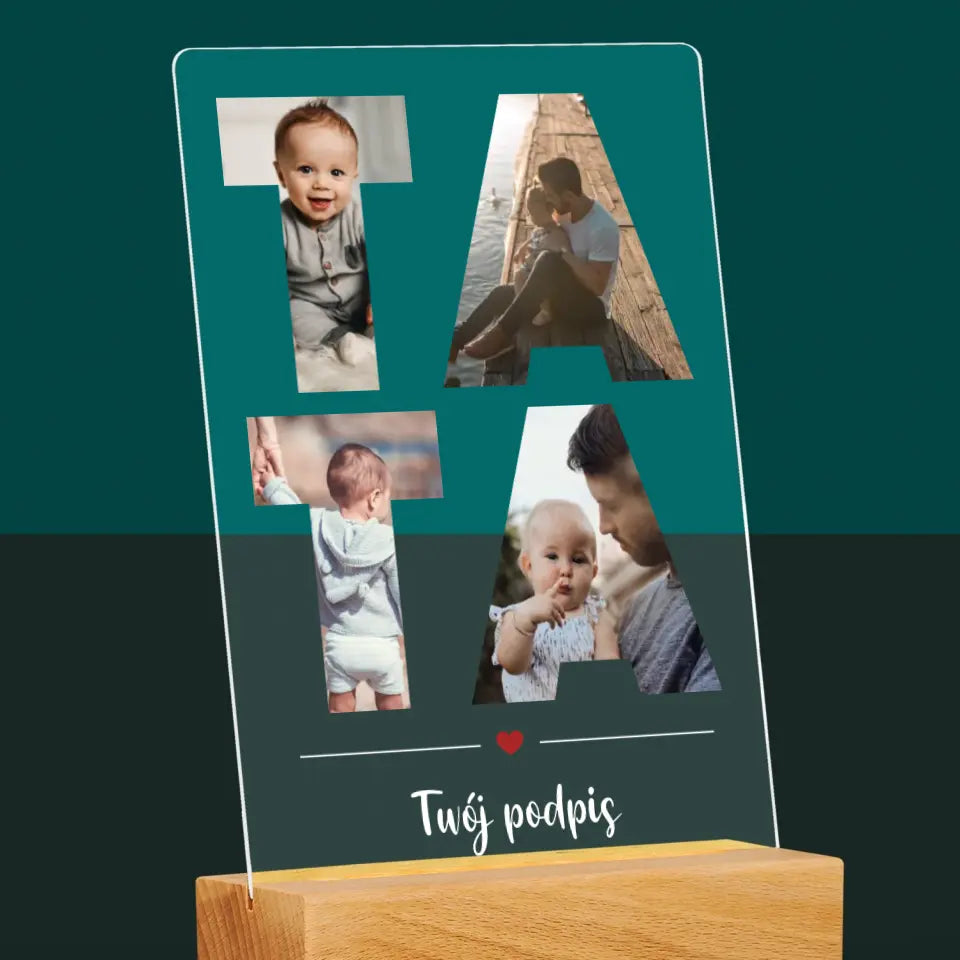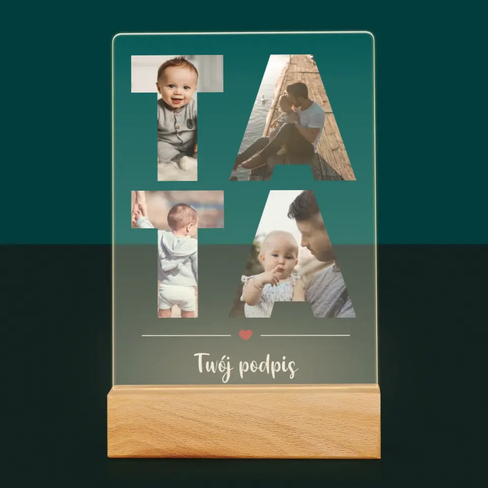 Słowo Ze Zdjęć: Tata - Wydruk na szkle akrylowym w ramce LED