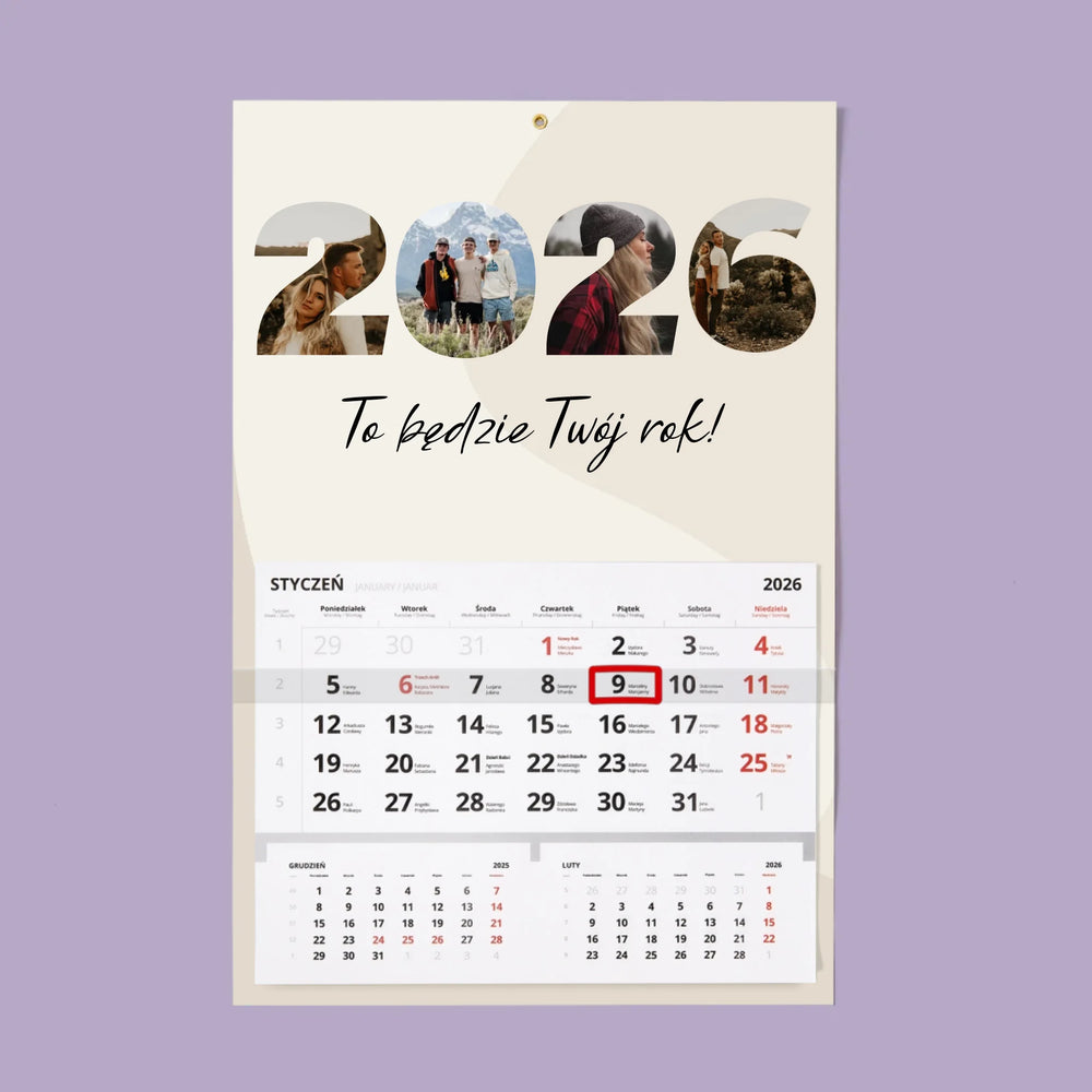 Kalendarz jednodzielny z wybranym przez Ciebie personalizowanym wzorem.