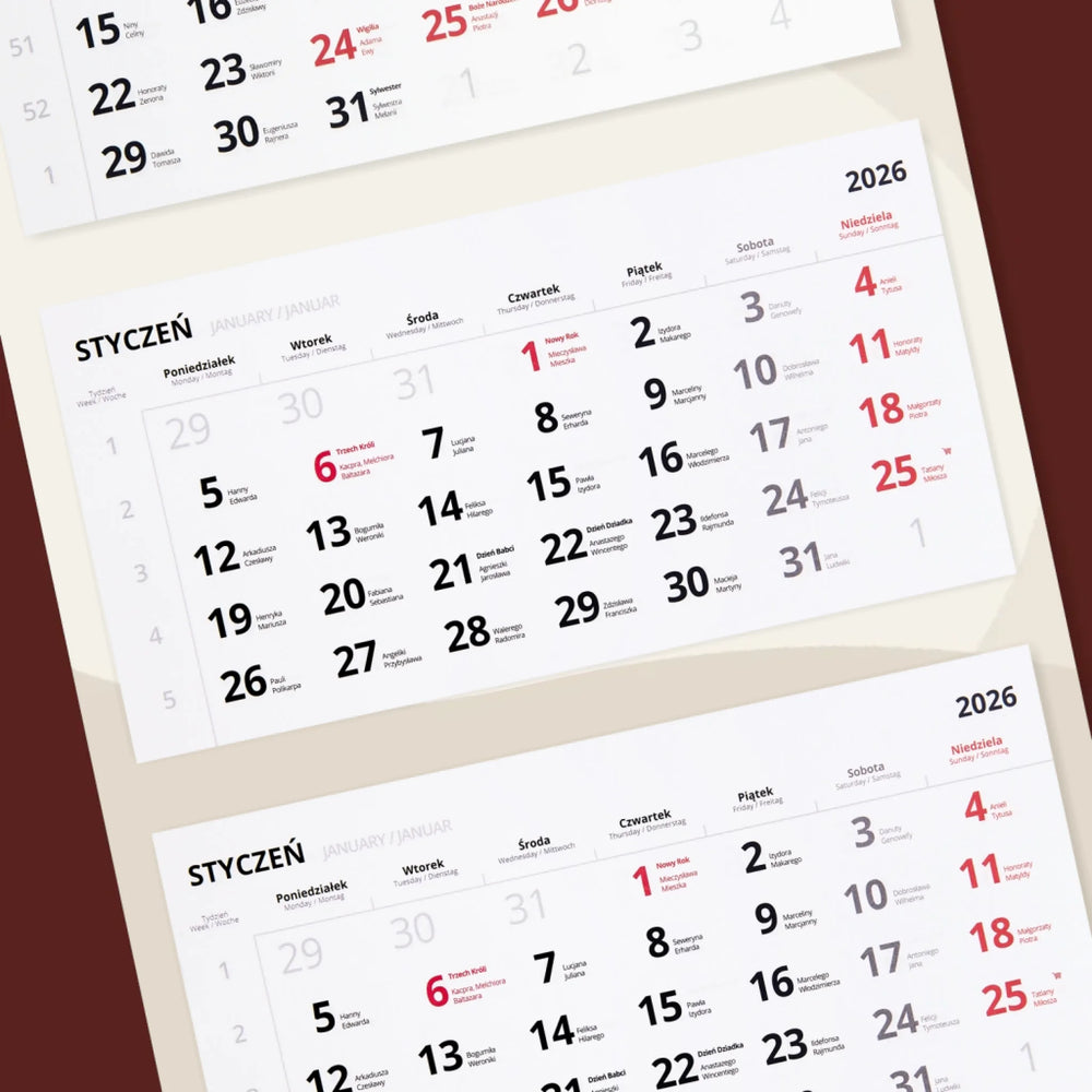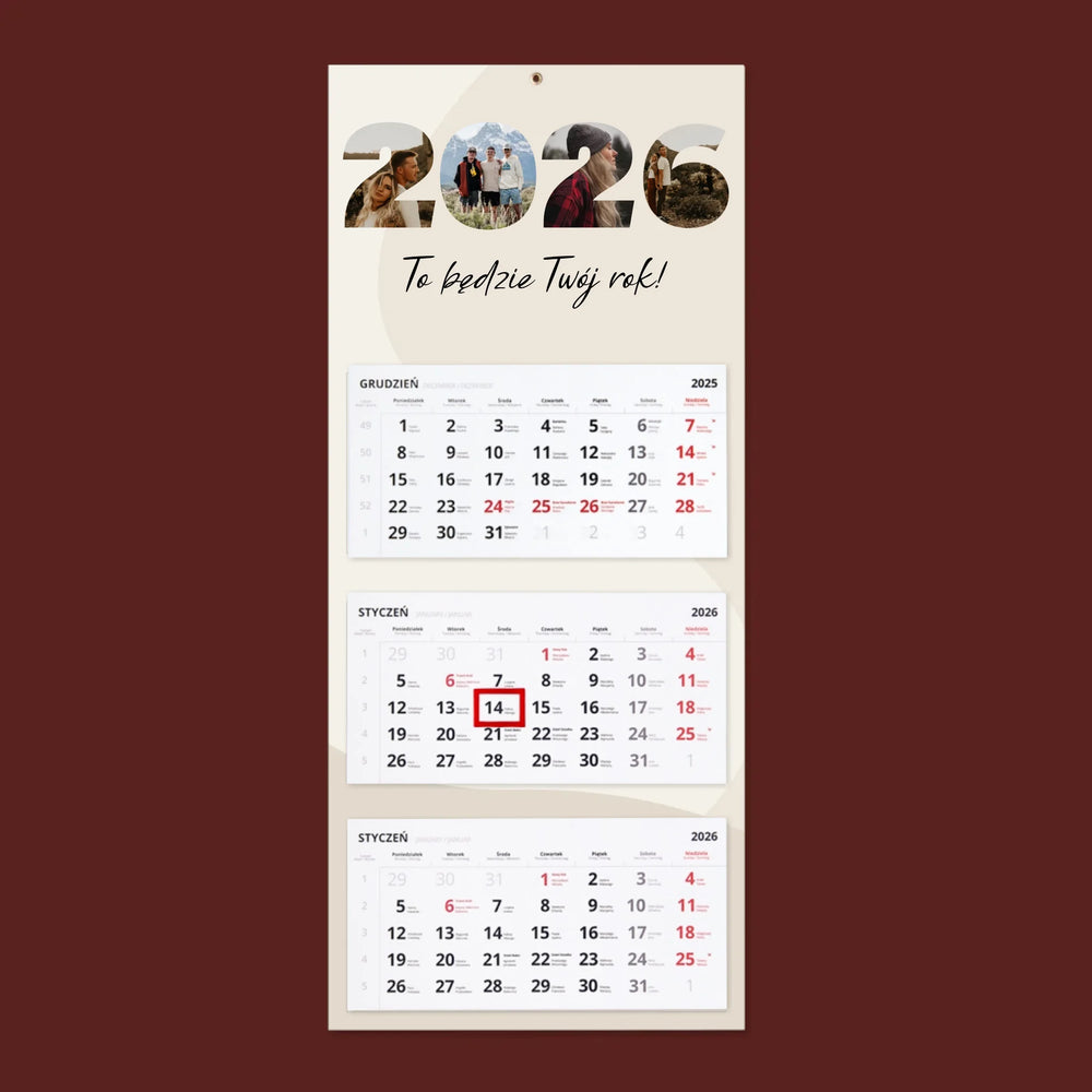 Kalendarz trójdzielny z wybranym przez Ciebie personalizowanym wzorem.