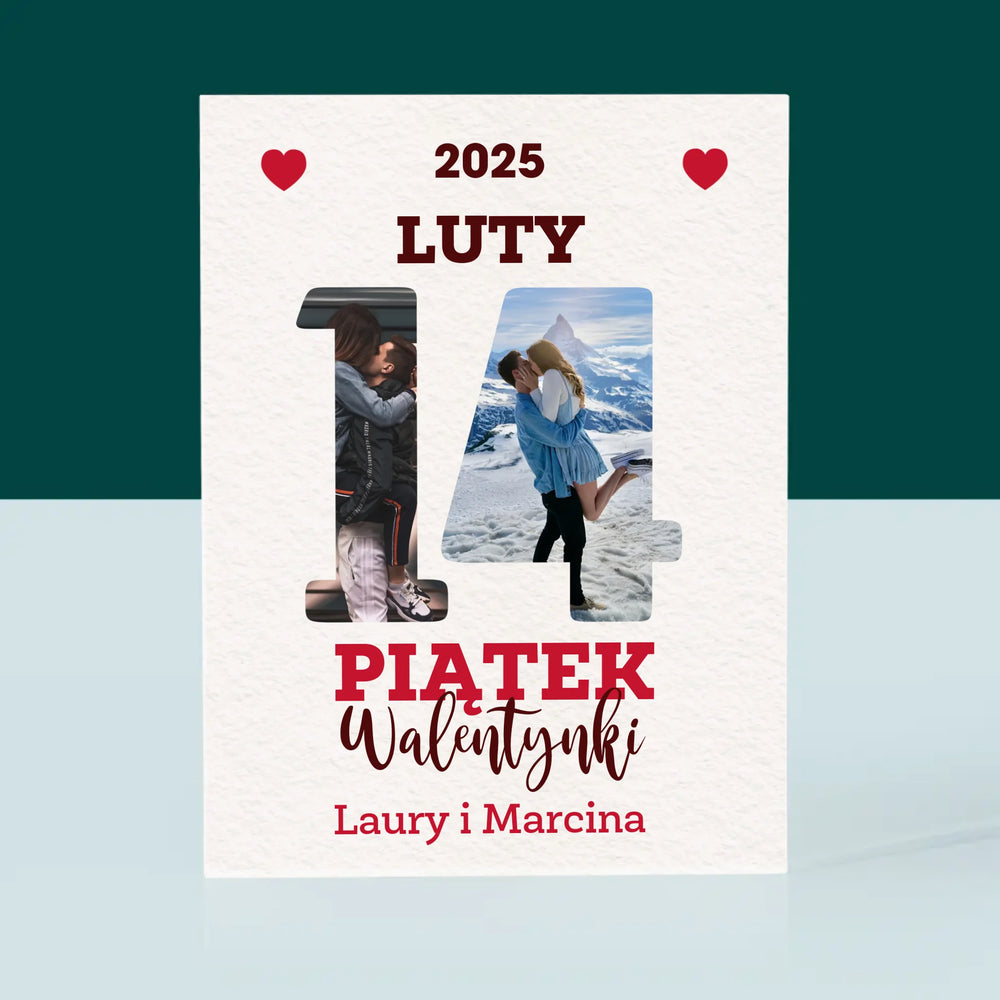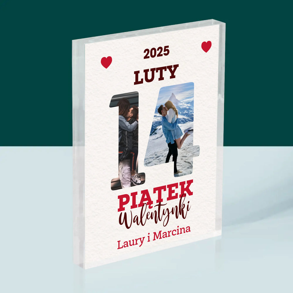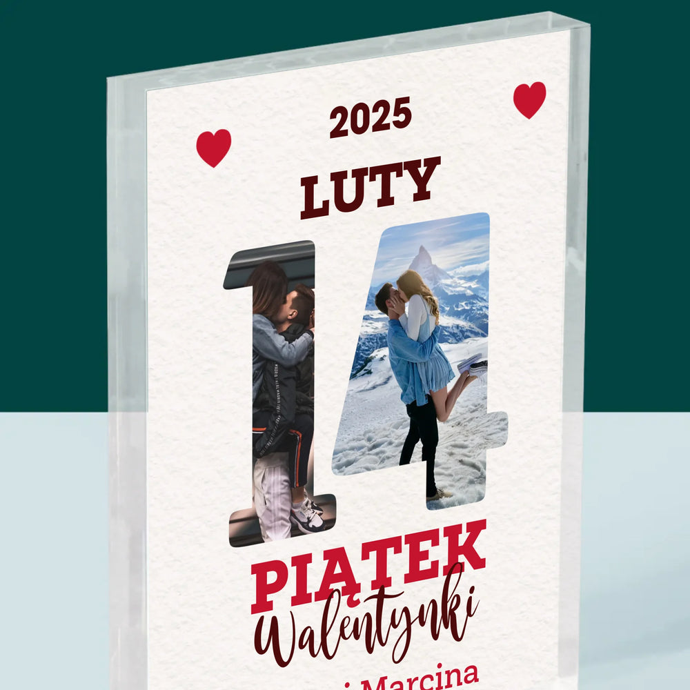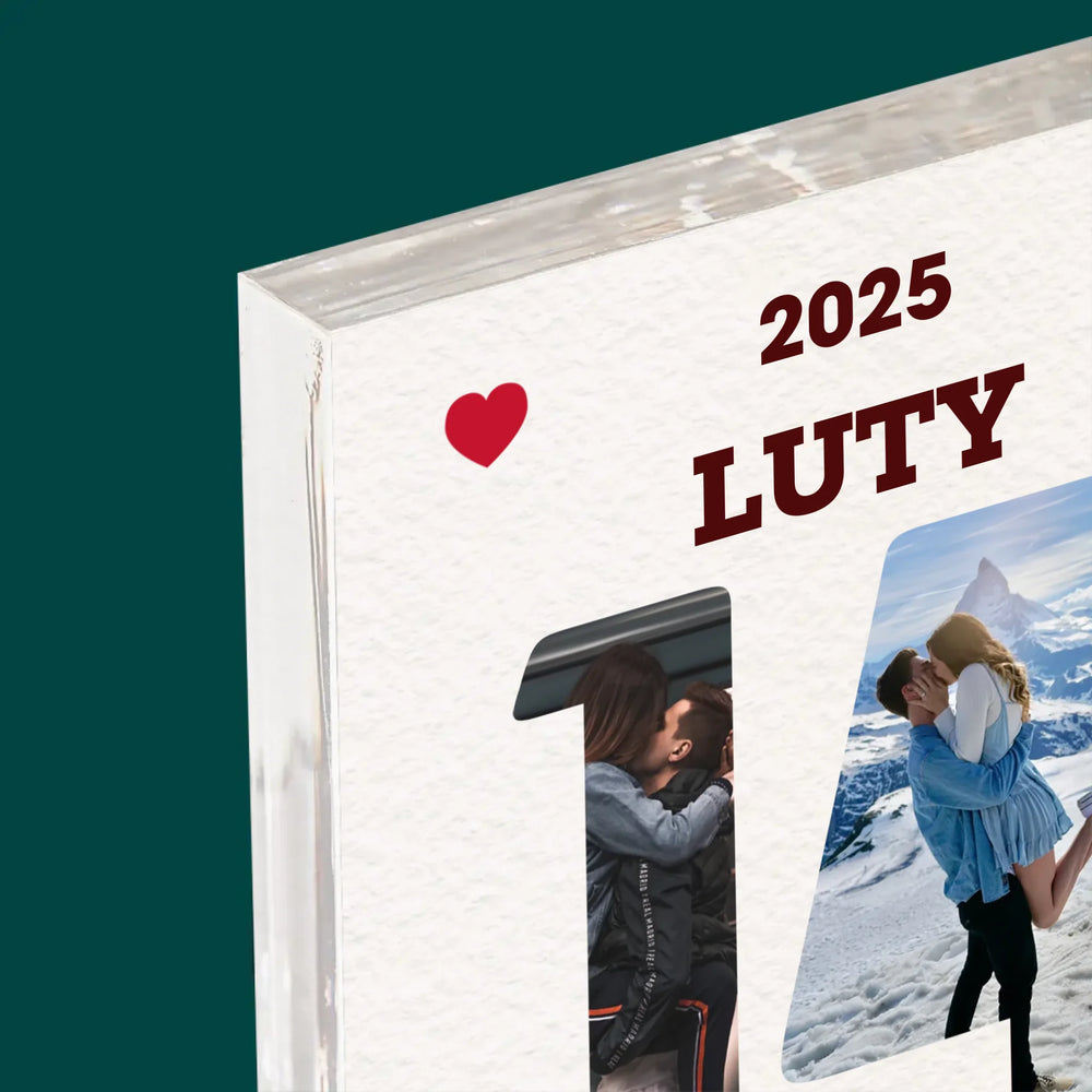 Słowo Ze Zdjęć: Walentynki Kartka z Kalendarza - Blok Akrylowy z Nadrukiem