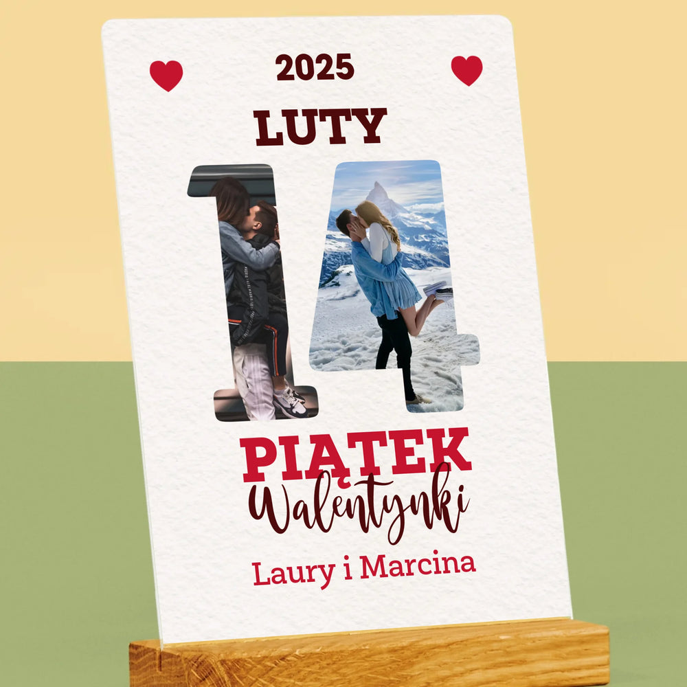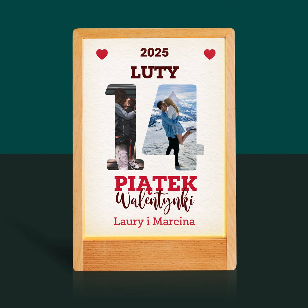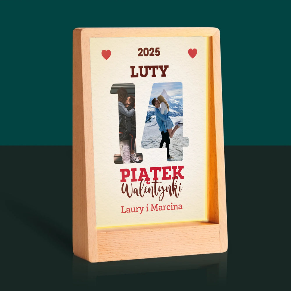 Słowo Ze Zdjęć: Walentynki Kartka z Kalendarza - Wydruk na szkle akrylowym w ramce LED