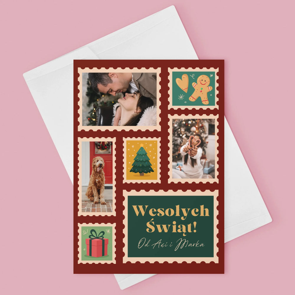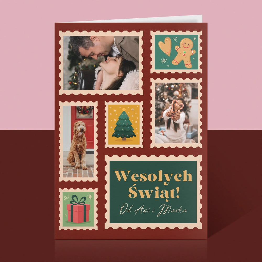 Fotokolaż: Świąteczne Znaczki Pocztowe - Kartka z życzeniami