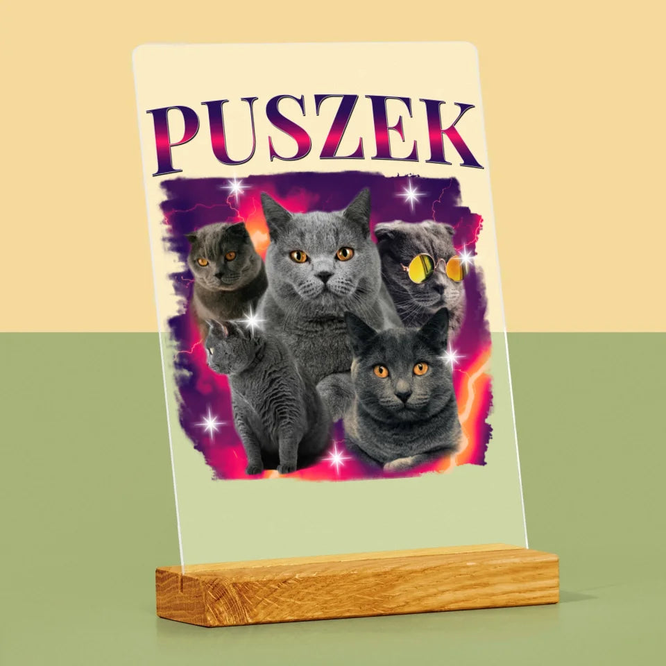 Twoja Postać: Bootleg Z Twoim Kotem - Wydruk na szkle akrylowym w ramce LED