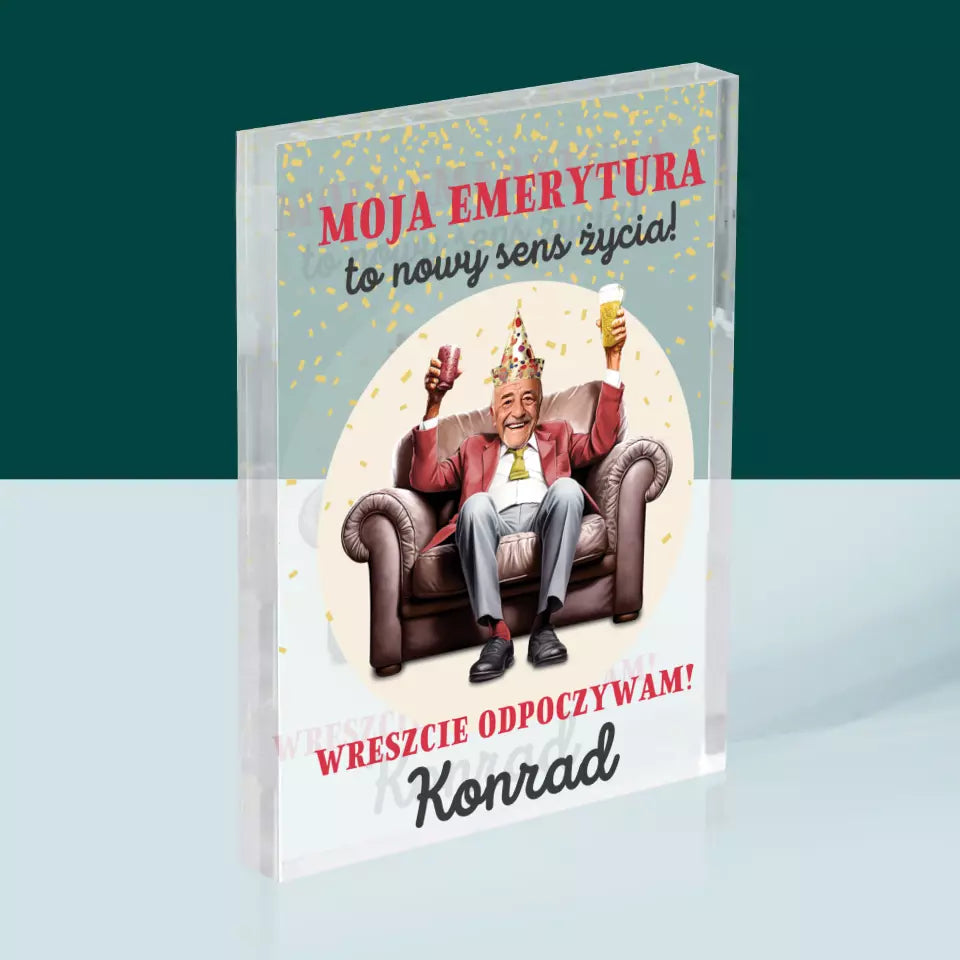 Twoja Postać: Emerytura To Sens Życia - Blok Akrylowy z Nadrukiem