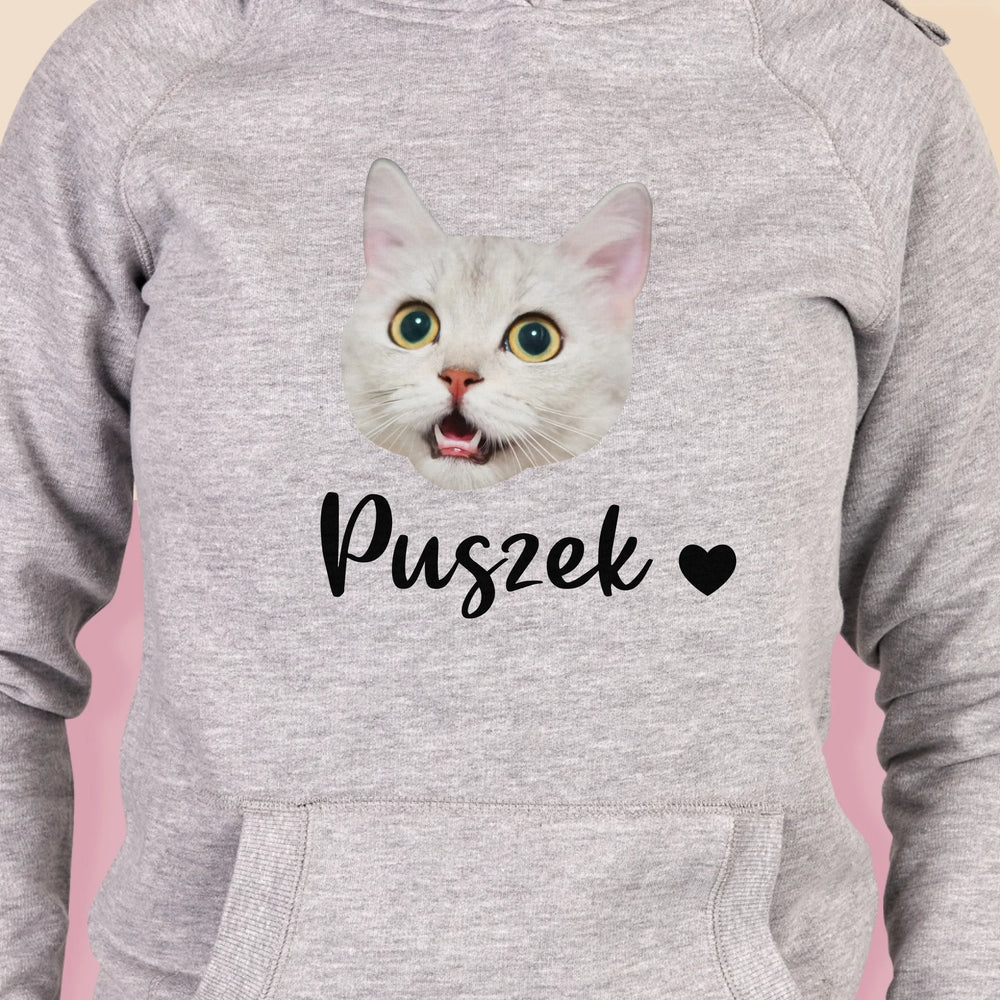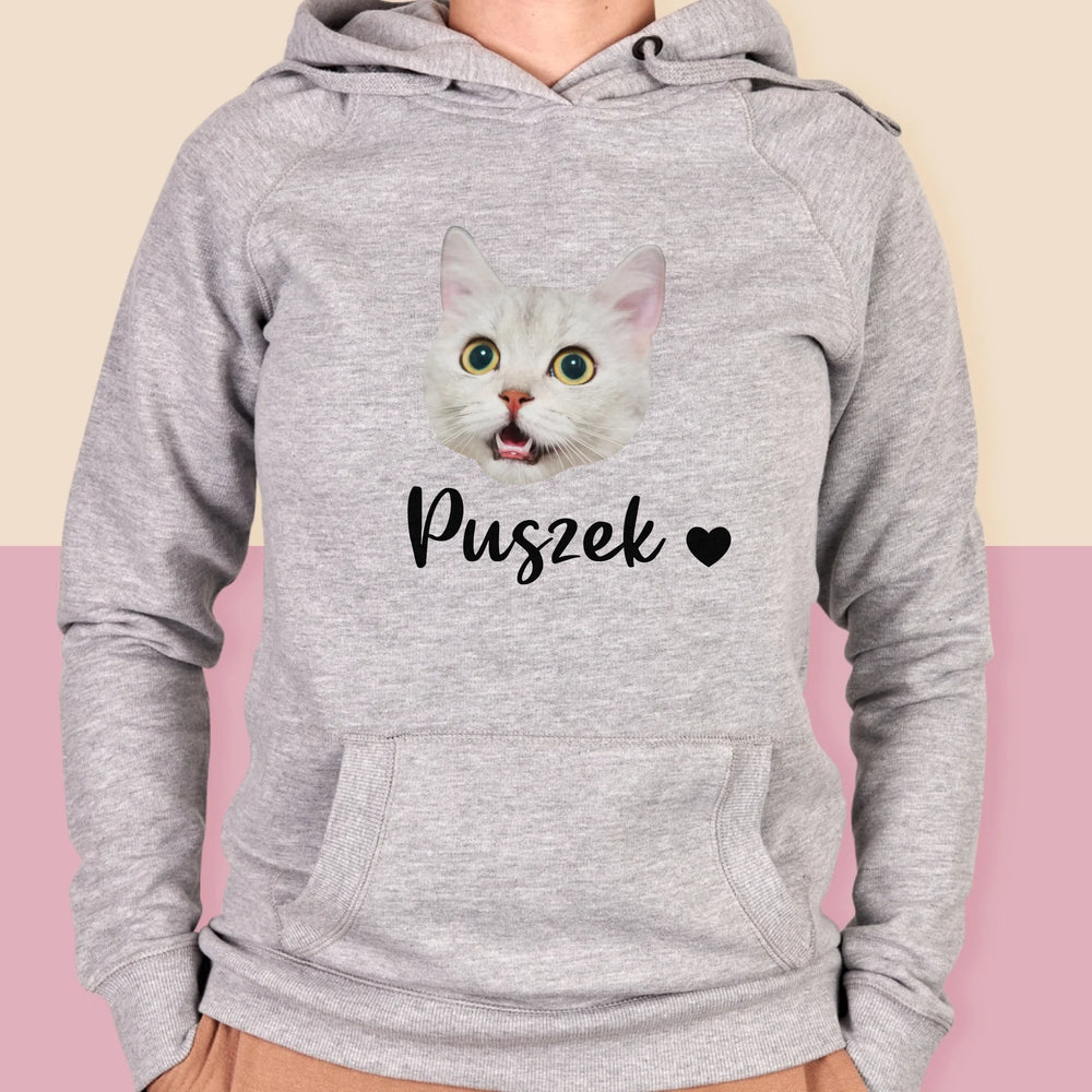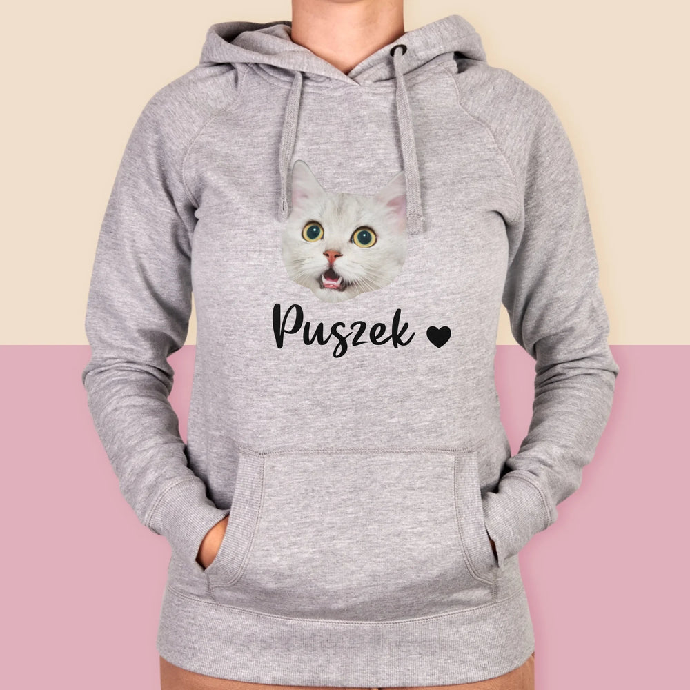 Twoja Postać: Głowa Twojego Kotka - Bluza damska z kapturem