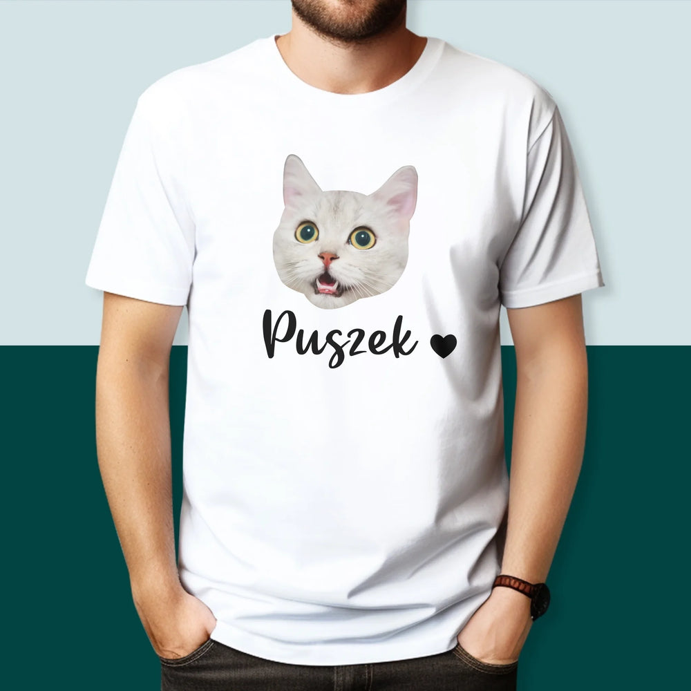 Twoja Postać: Głowa Twojego Kotka - Personalizowana Koszulka Męska