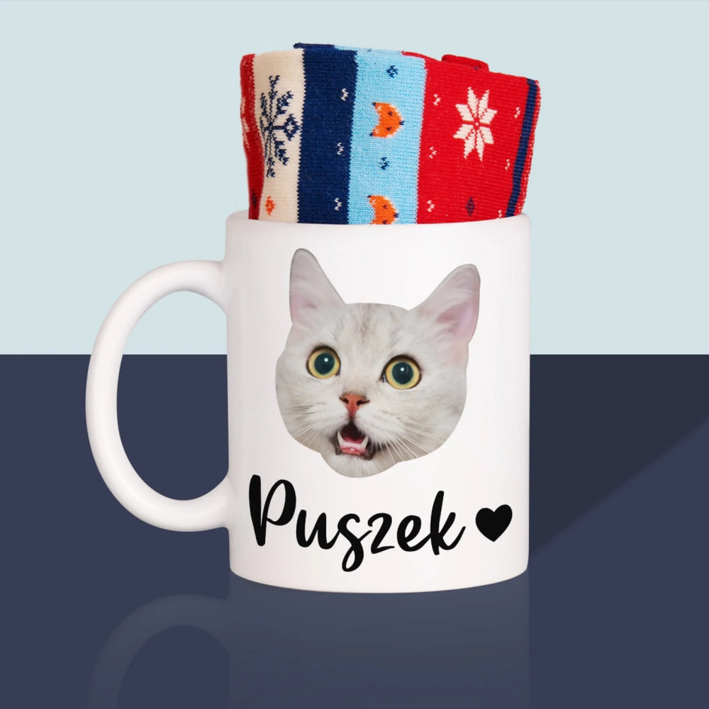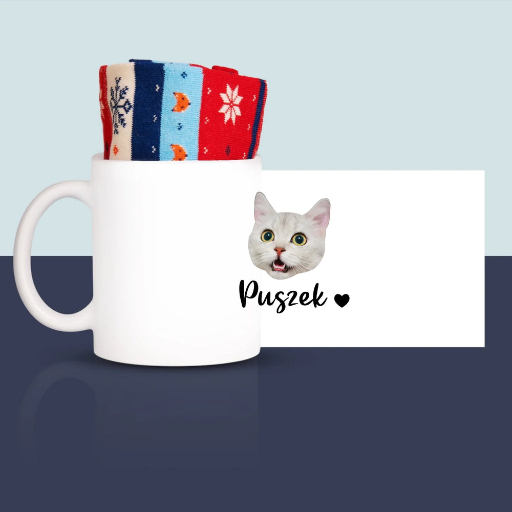 Twoja Postać: Głowa Twojego Kotka - Zimowe skarpetki w kubku