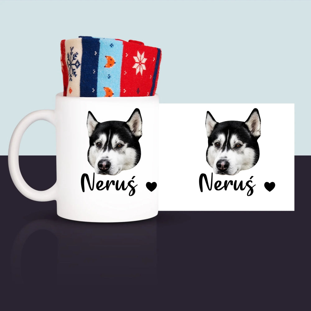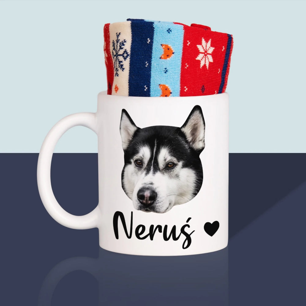 Twoja Postać: Głowa Twojego Pieska - Zimowe skarpetki w kubku