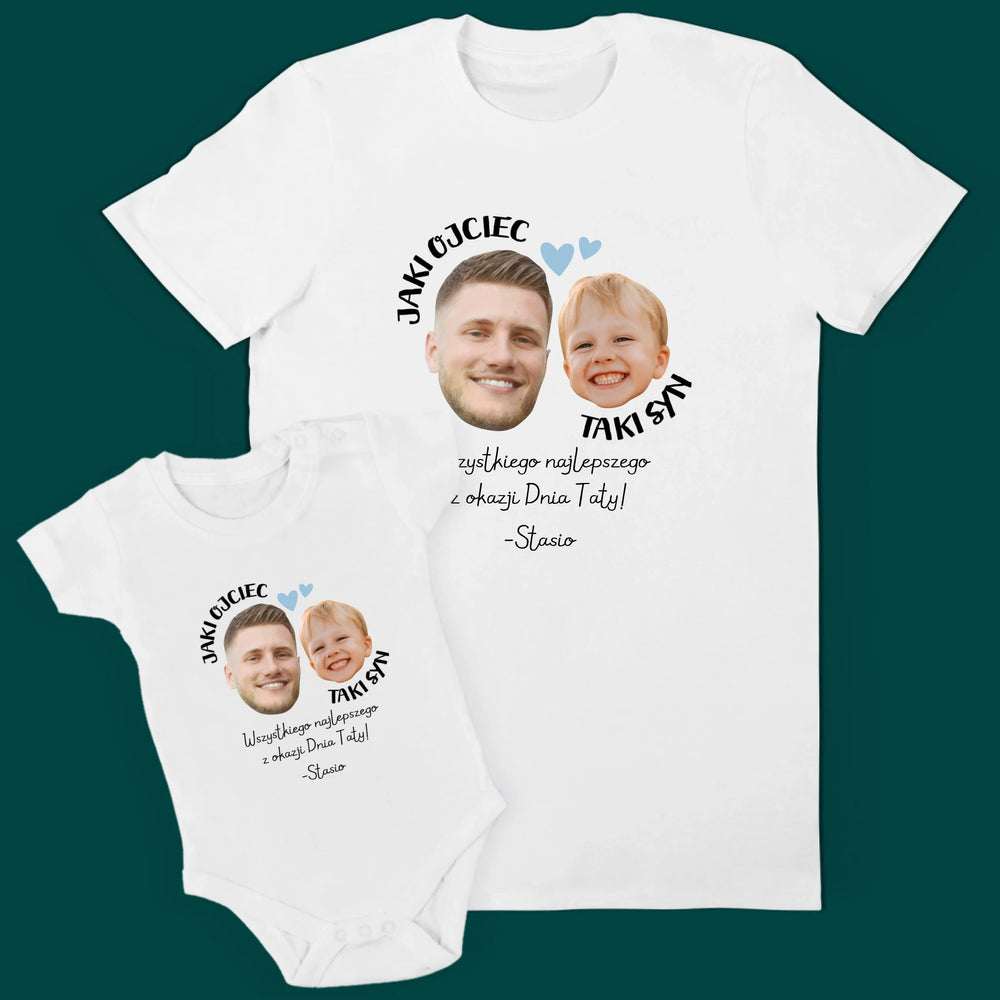 Koszulka męską oraz body dla dziecka z wybraną przez Ciebie personalizacją.