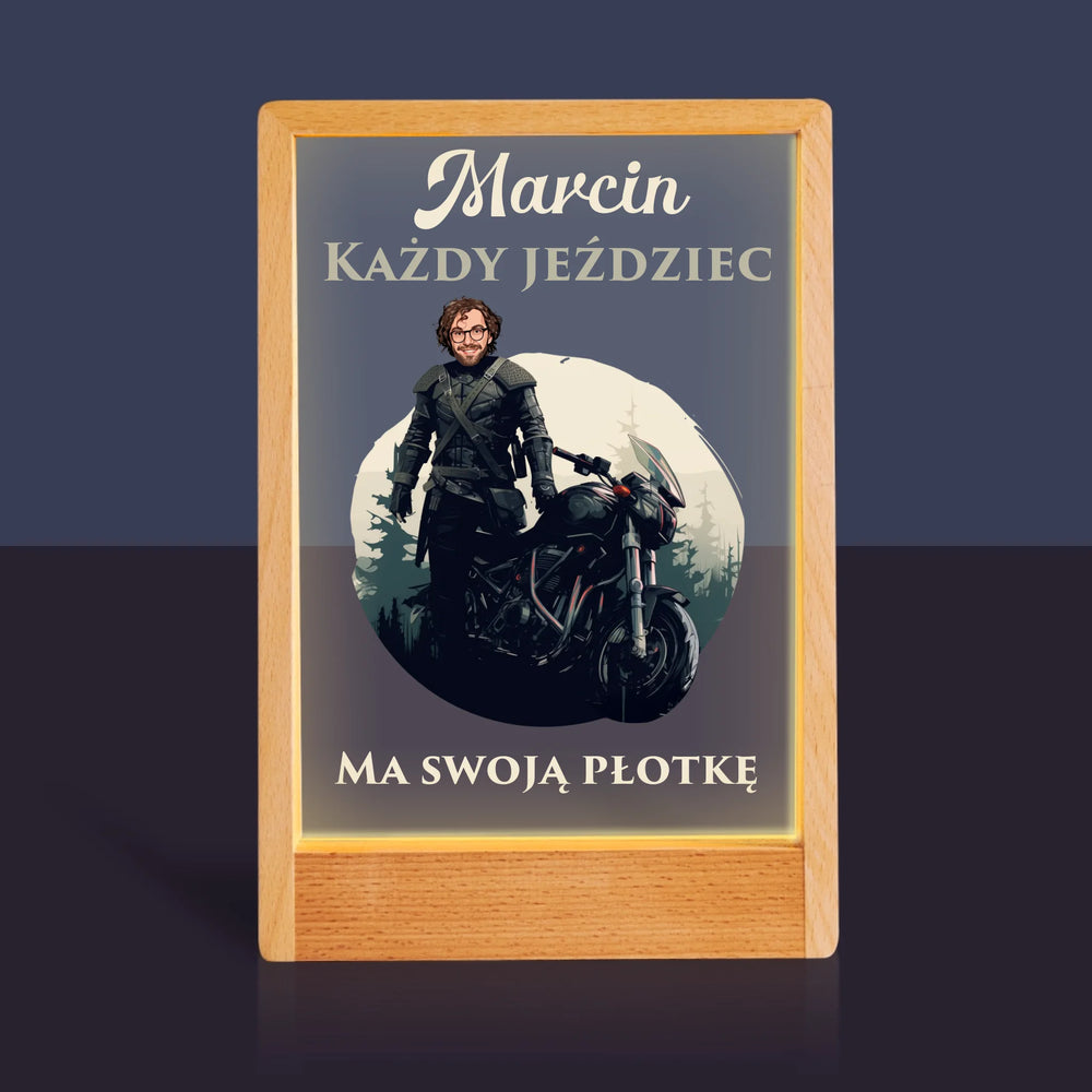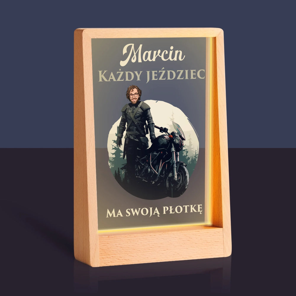 Twoja Postać: Każdy Jeździec - Wydruk na szkle akrylowym w ramce LED
