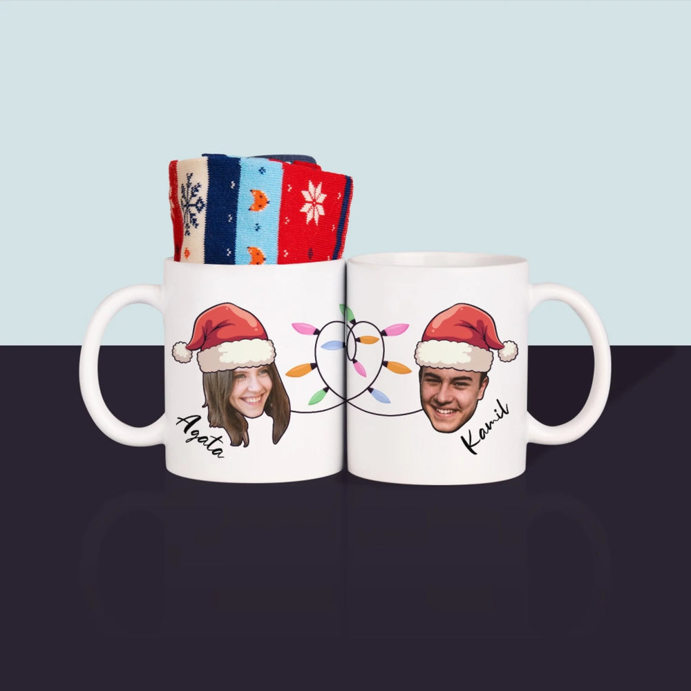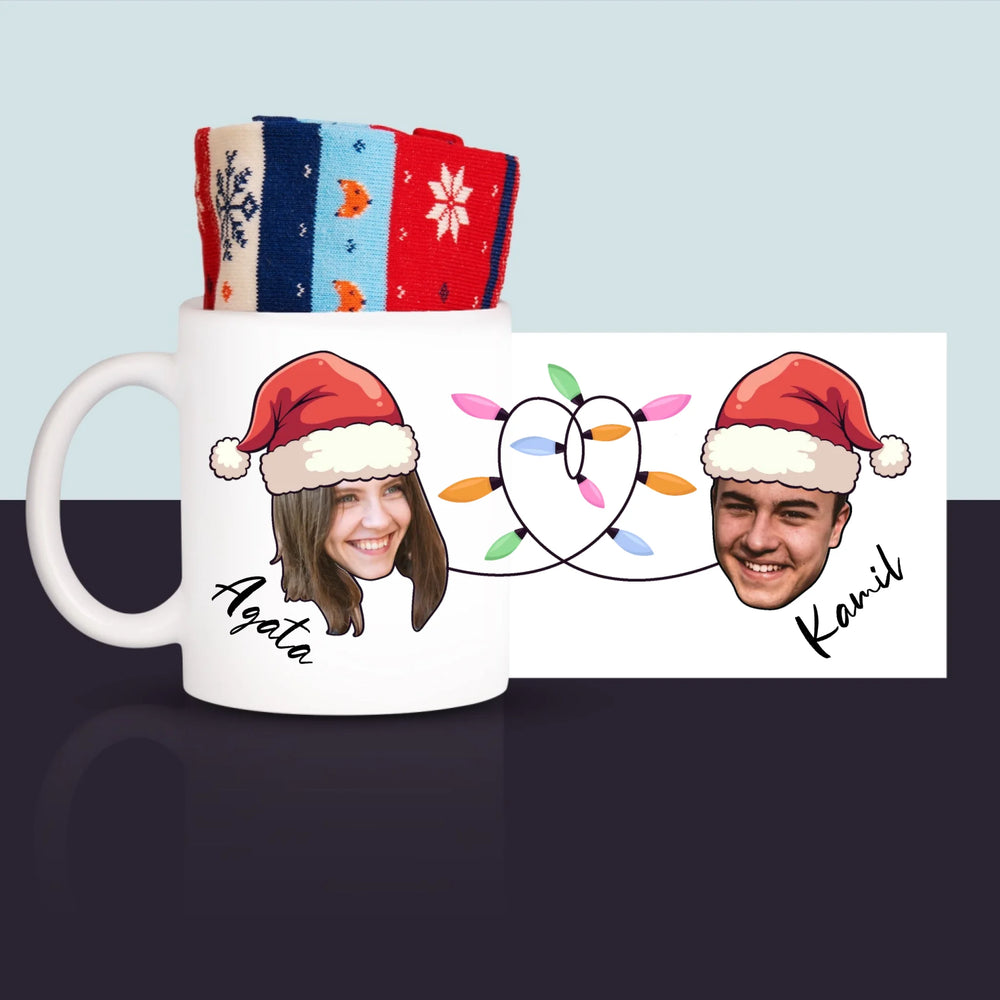 Wysokiej jakości kubek z wybraną przez Ciebie personalizacją ze skarpetkami w środku.