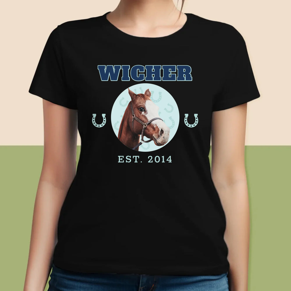 Twoja Postać: Twój Koń Varsity - Personalizowana Koszulka Damska