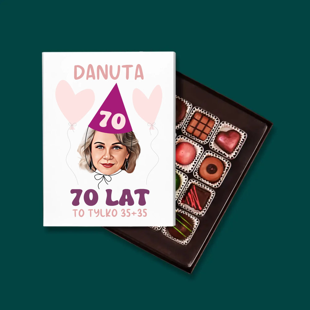 Pyszne praliny z belgijskiej czekolady w eleganckim pudełku z wybraną przez Ciebie personalizacją.